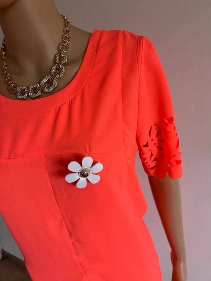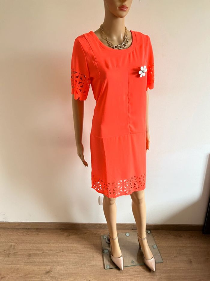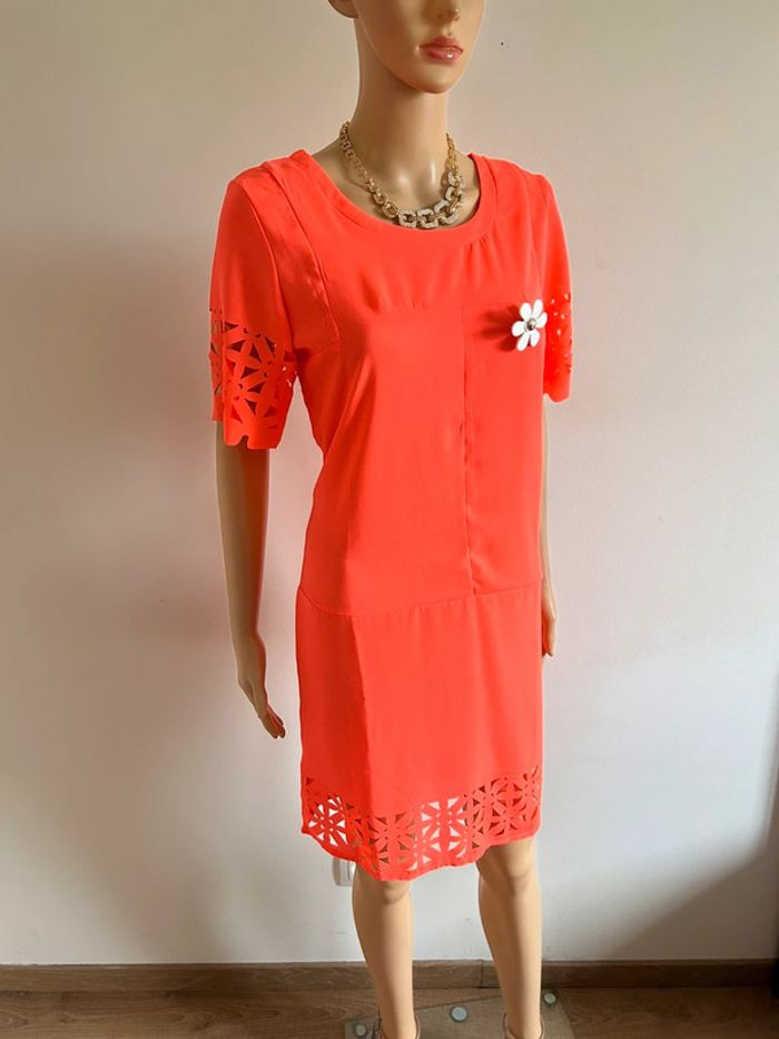 Robe orange fluo neuve à manches courtes Molly Bracken taille 2 - photo numéro 3