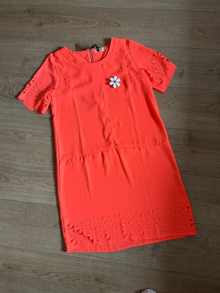 Robe orange fluo neuve à manches courtes Molly Bracken taille 2 - photo numéro 1