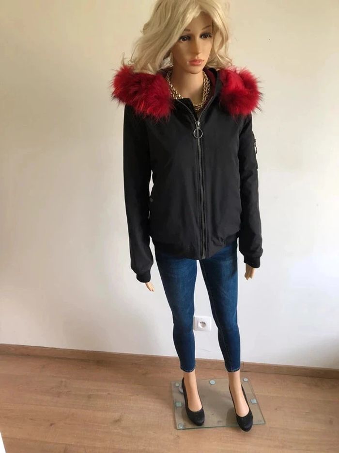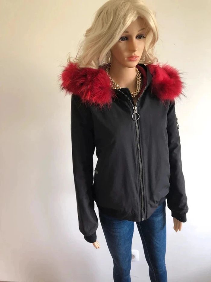 Parka noire avec fausse fourrure rouge Gold & Silver taille 1 bon état (avec défaut) - photo numéro 9