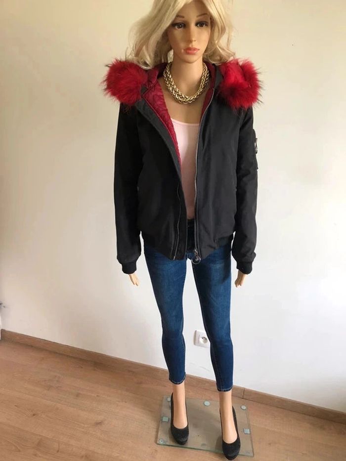 Parka noire avec fausse fourrure rouge Gold & Silver taille 1 bon état (avec défaut) - photo numéro 20
