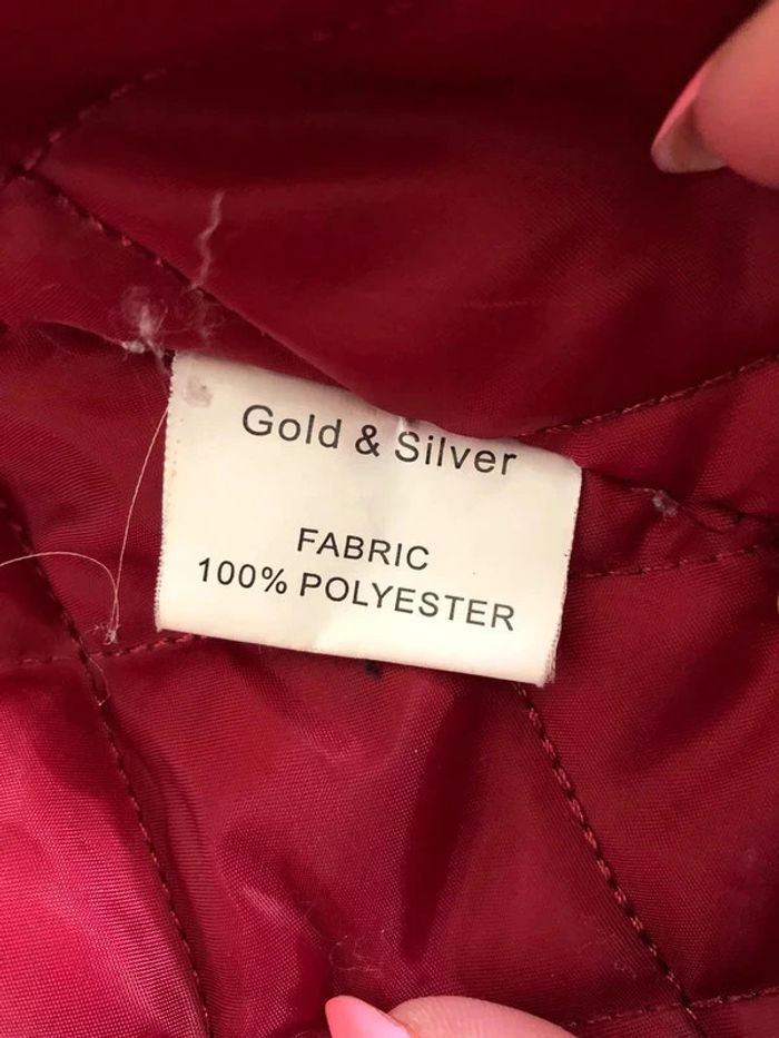 Magnifique parka noire et rouge à capuche, avec fausse fourrure, de marque Gold & Silver. Taille 1 qui correspond à du 36. Portée une saison en bon état. Des défauts a signaler : présence de bouloches par endroit. La fourrure de la capuche est amovible mais un des élastiques est craqué. aisselle à aisselle 51 cms épaule à épaule 41 cms longueur manches 60 cms taille 50 cms longueur depuis épaule 60 cms 100% polyester Le prix reste négociable dans la limite du raisonnable. Un petit cadeau dans le colis.