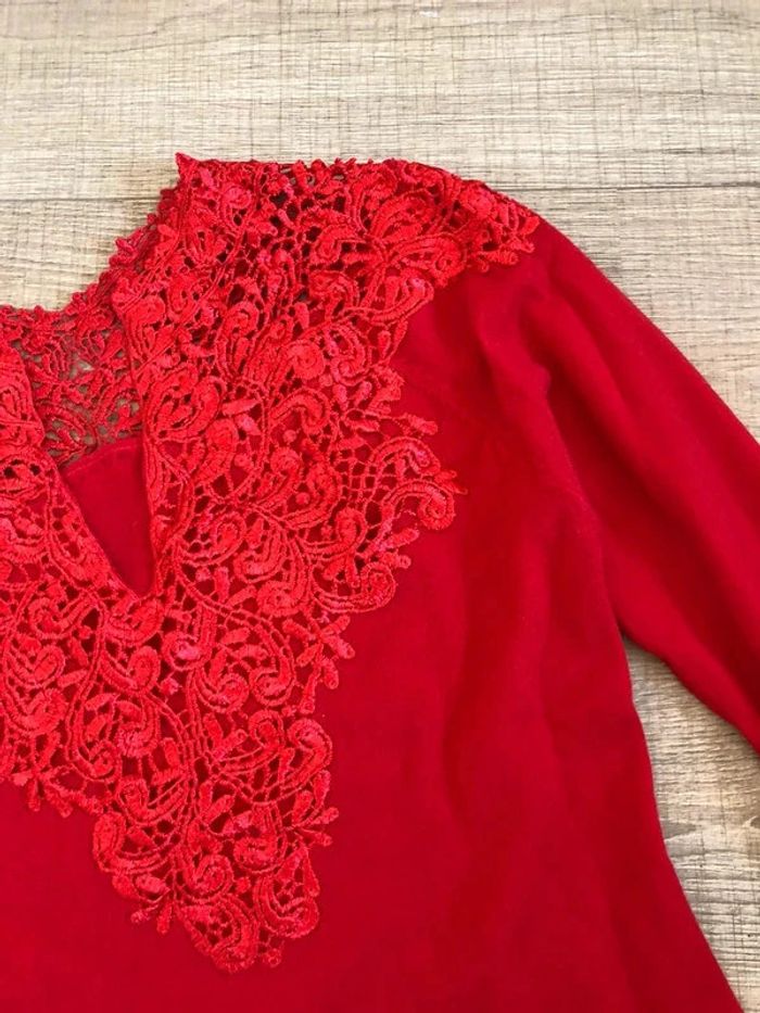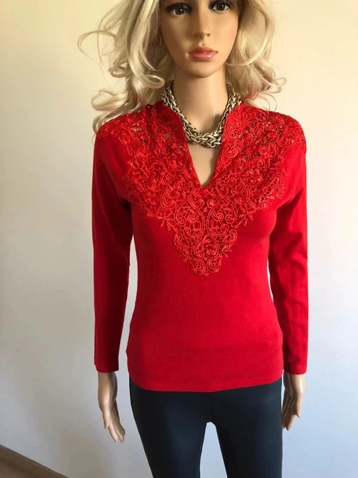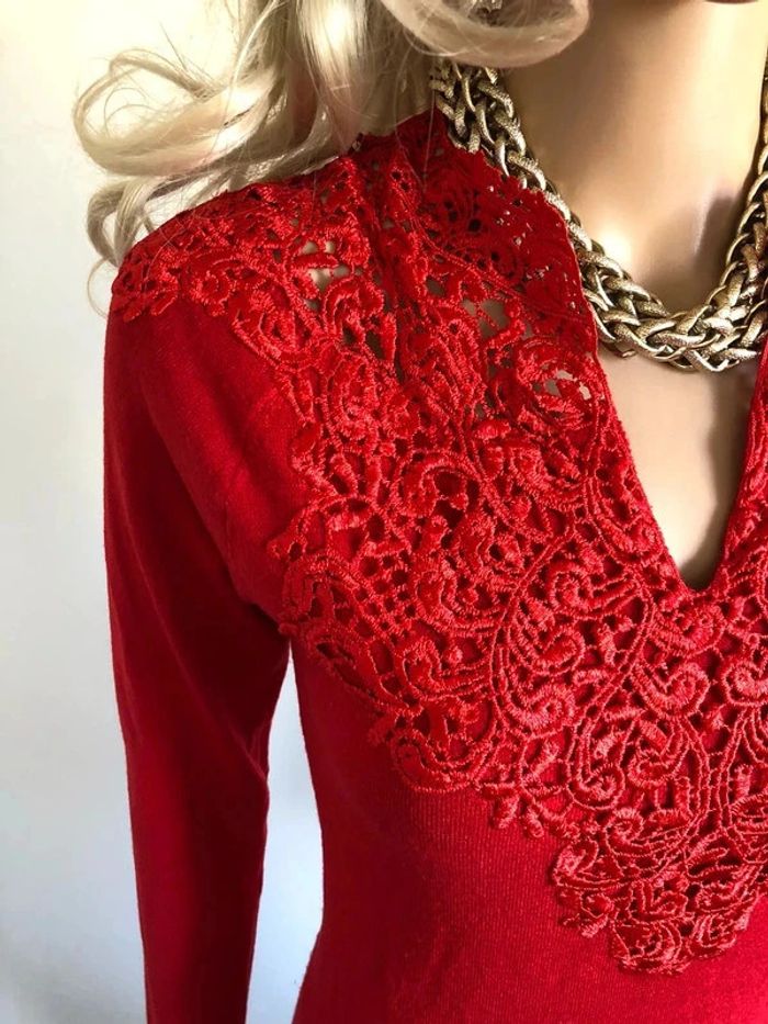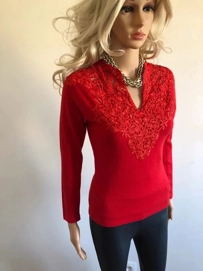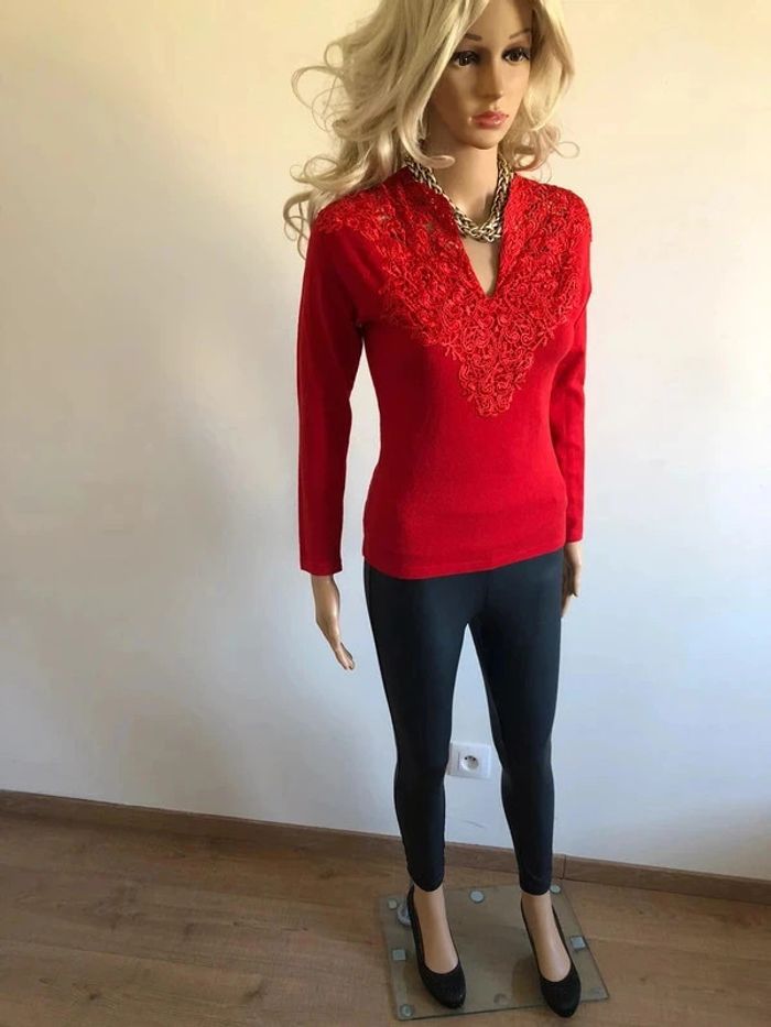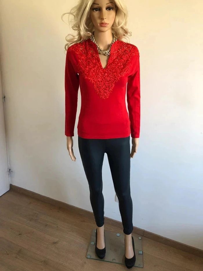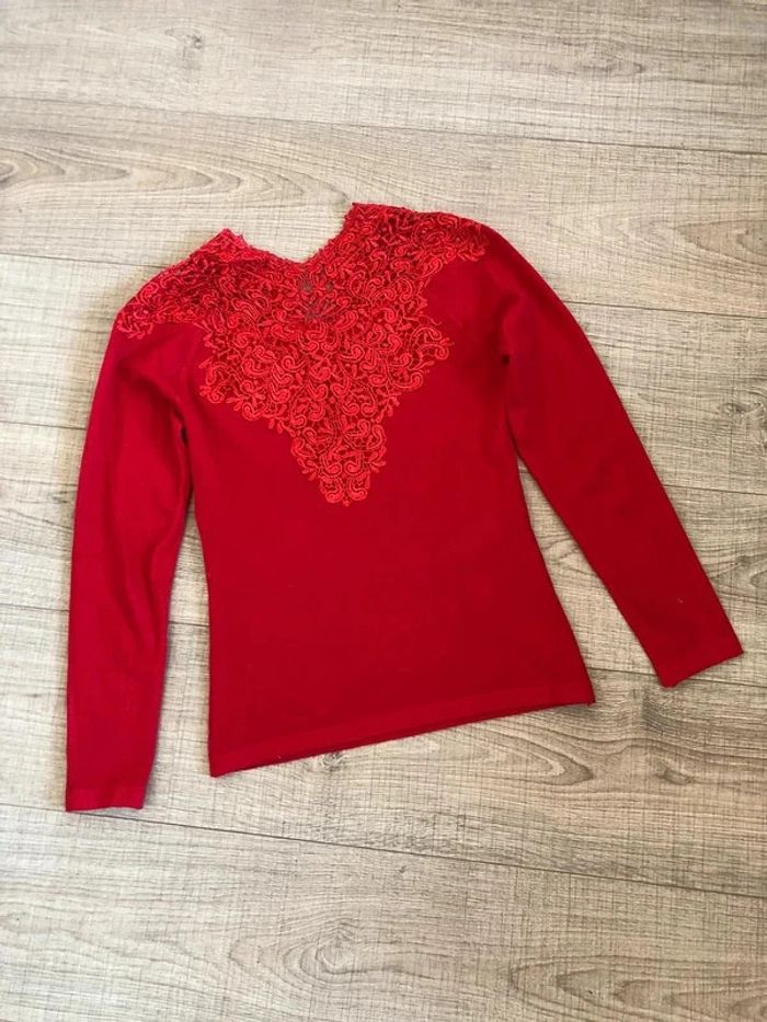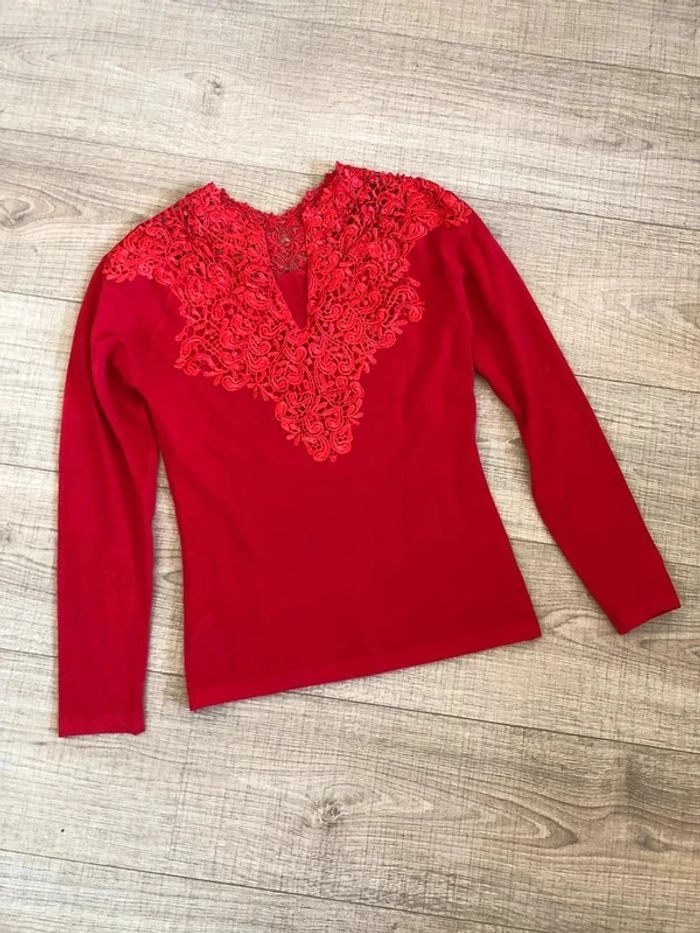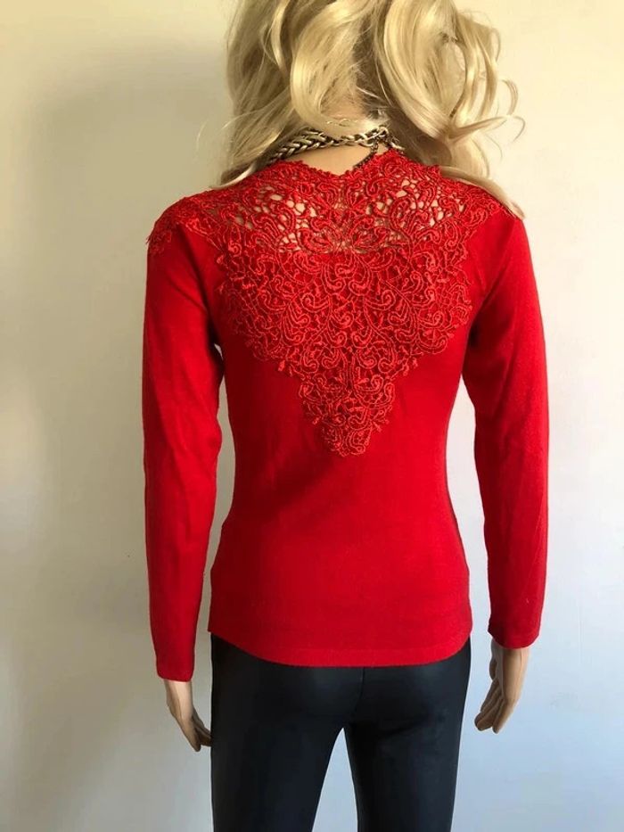 Pull rouge à manches longues avec dentelle taille unique TBE - photo numéro 12