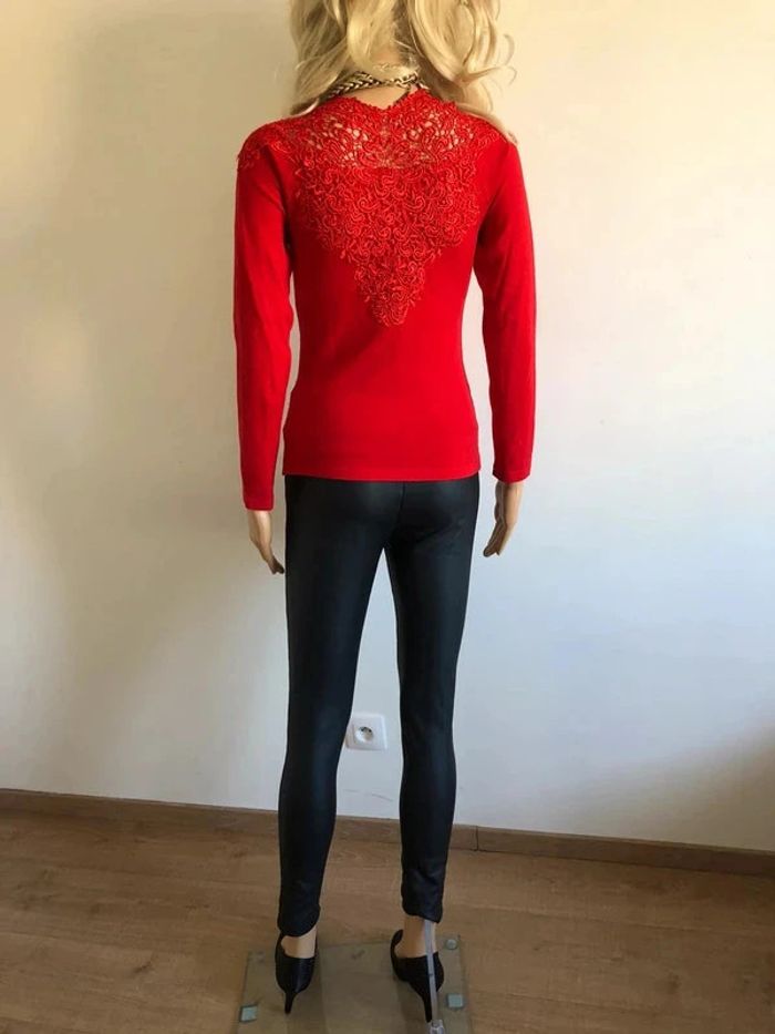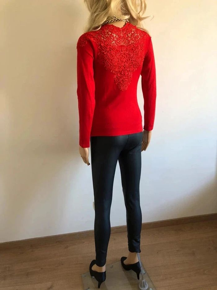 Pull rouge à manches longues avec dentelle taille unique TBE - photo numéro 2