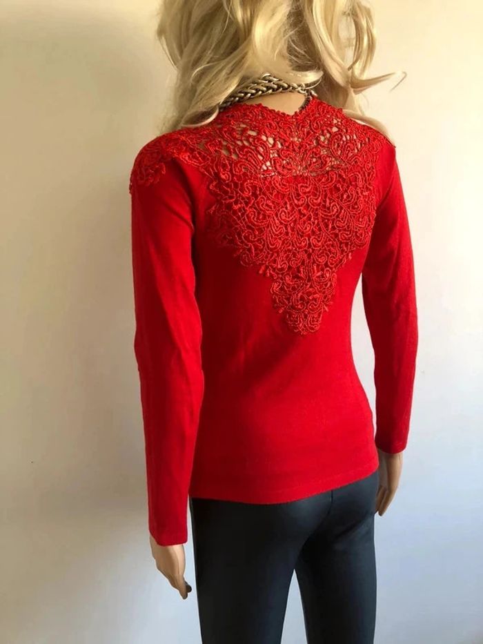 Pull rouge à manches longues avec dentelle taille unique TBE - photo numéro 3