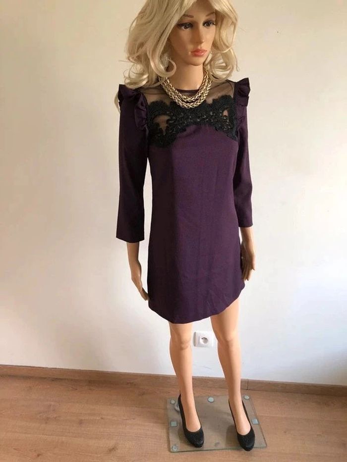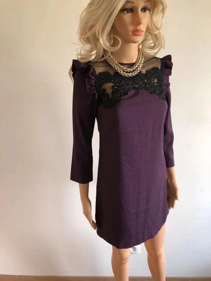 Robe prune et noire neuve avec dentelle et plumetis Morgan taille 34 (valeur 70€) - photo numéro 1