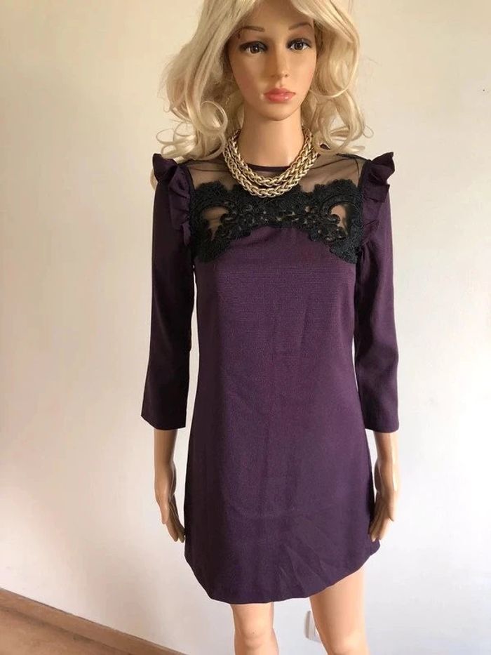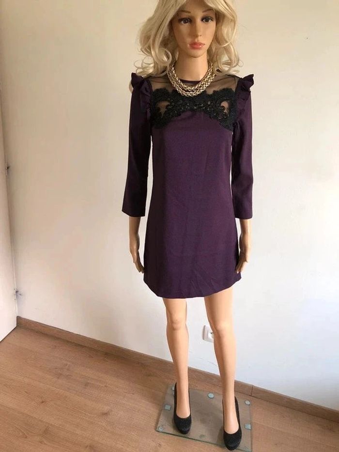 Robe prune et noire neuve avec dentelle et plumetis Morgan taille 34 (valeur 70€) - photo numéro 2