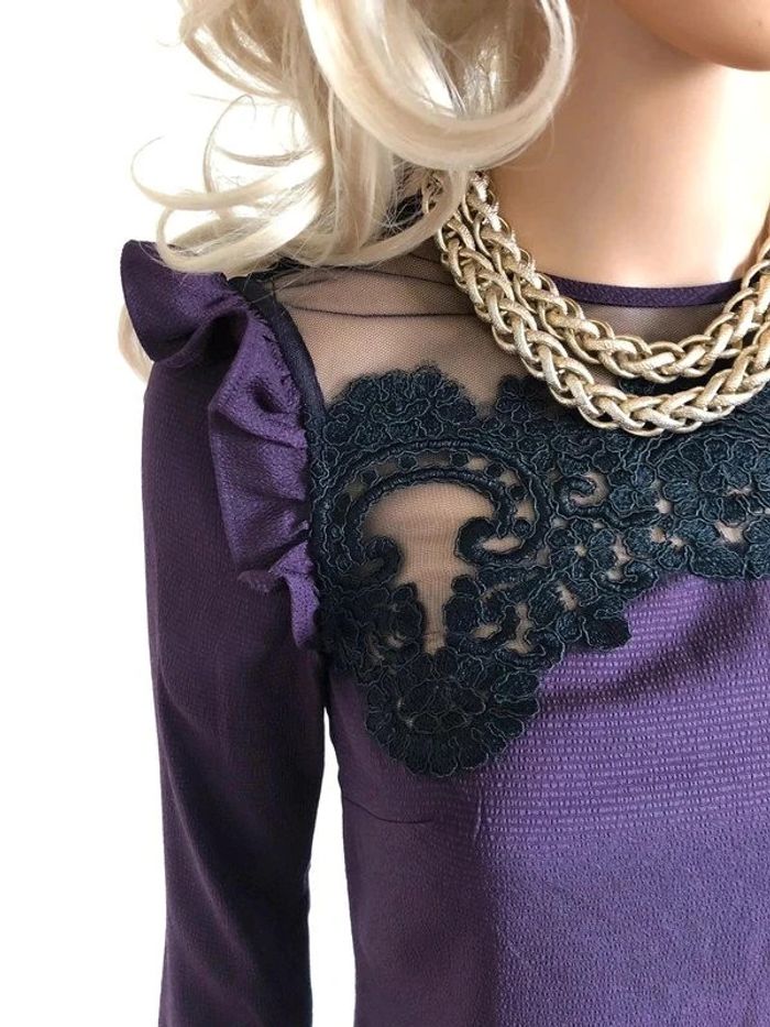Magnifique robe prune et noire, avec de la dentelle, de marque Morgan. Fermeture dans le dos. Taille 34. Elle est neuve avec étiquette (valeur 70€). aisselle à aisselle 40 cms épaule à épaule 34 cms longueur manches 49 cms taille 38 cms longueur depuis épaule 80 cms 100% polyester Le prix reste négociable dans la limite du raisonnable. Un petit cadeau dans le colis. (Boîte 11)