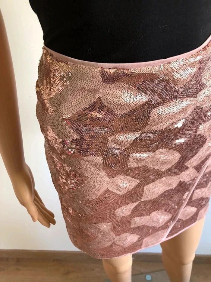 Jupe rose en sequins Morgan taille 38 excellent état - photo numéro 6