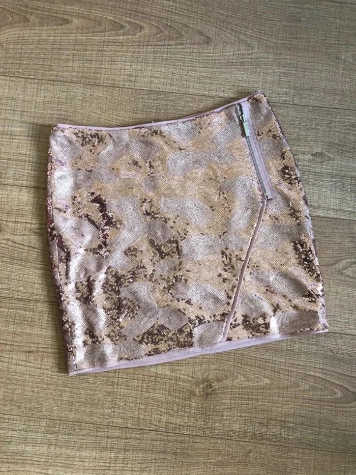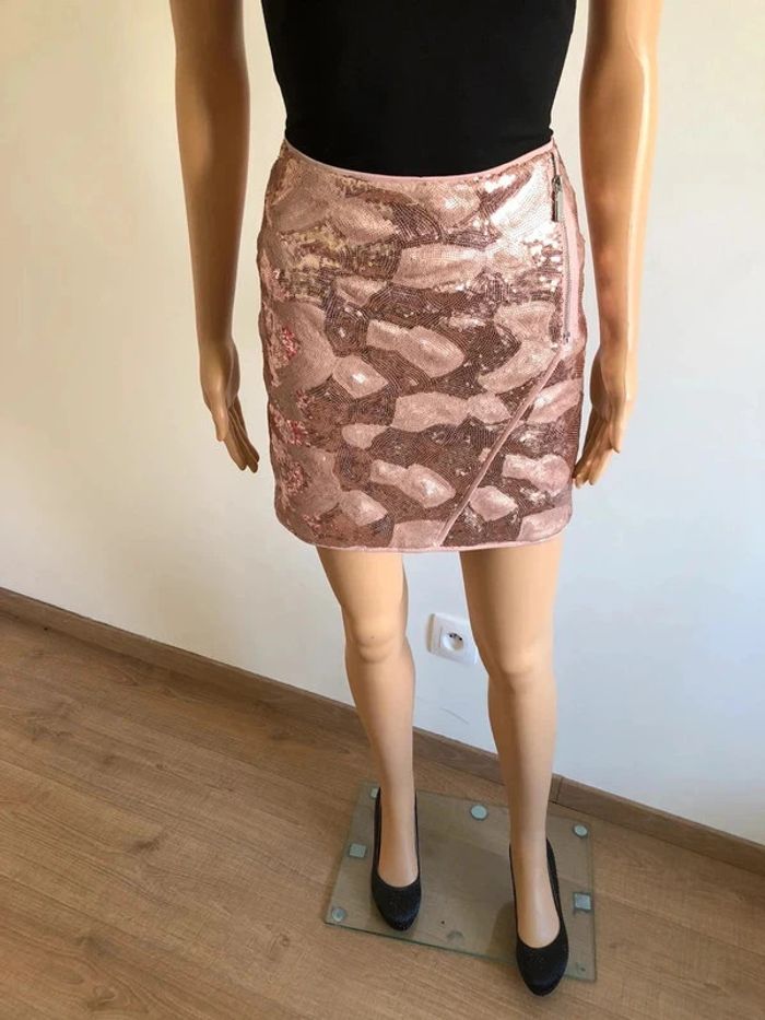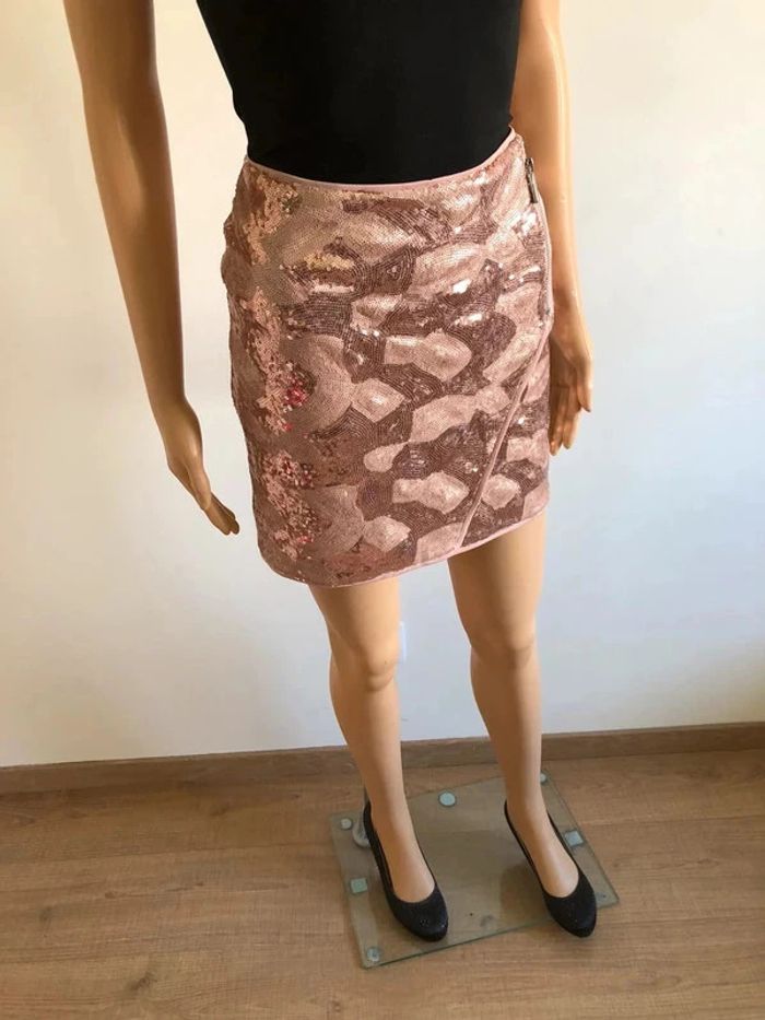 Jupe rose en sequins Morgan taille 38 excellent état - photo numéro 1