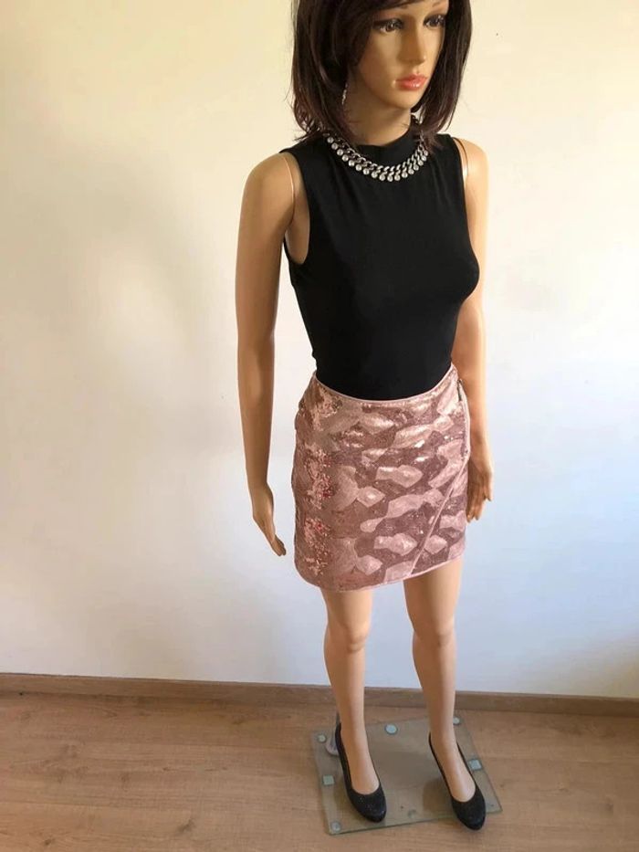 Jupe rose en sequins Morgan taille 38 excellent état - photo numéro 13
