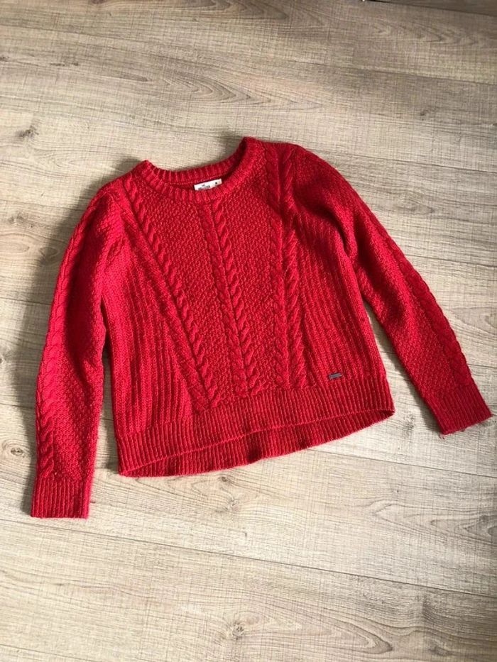 Pull rouge à manches longues Hollister taille M état satisfaisant (présence de bouloches) - photo numéro 1