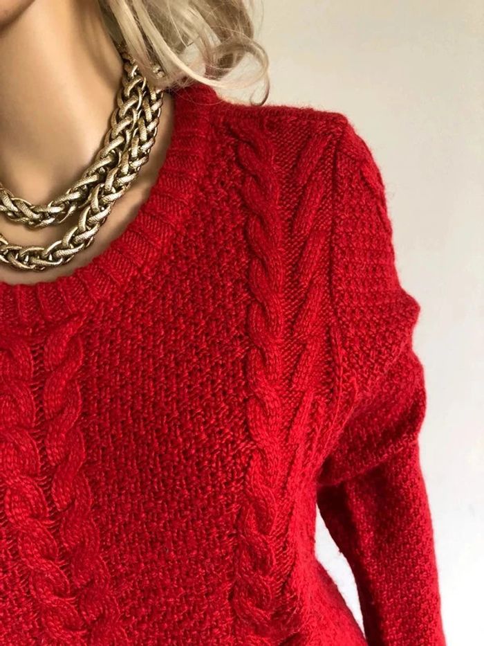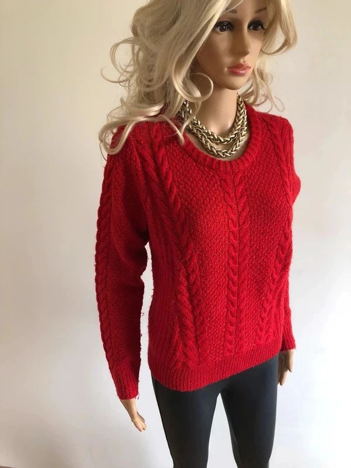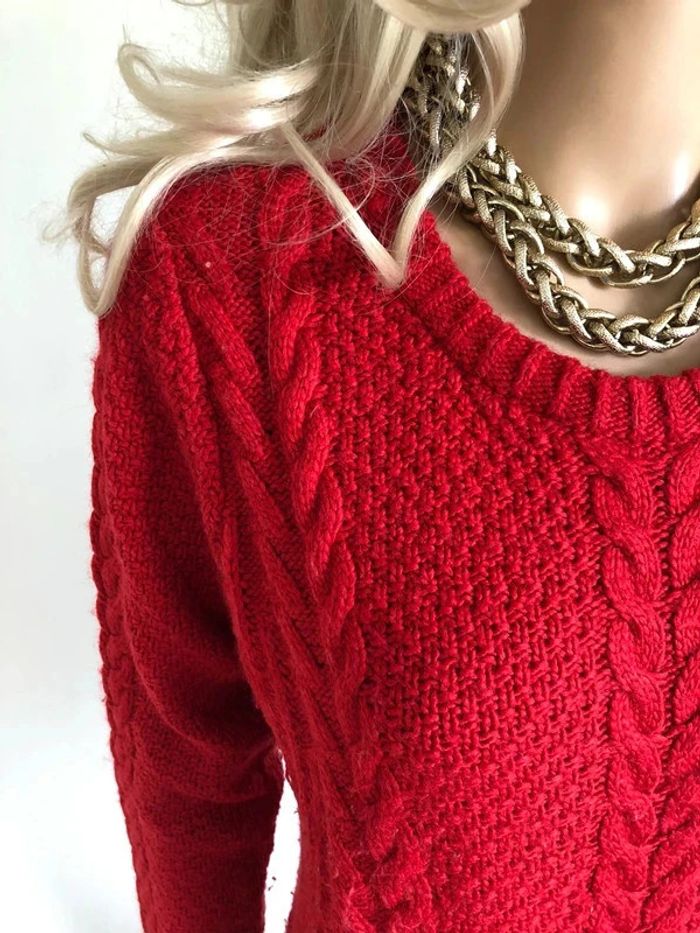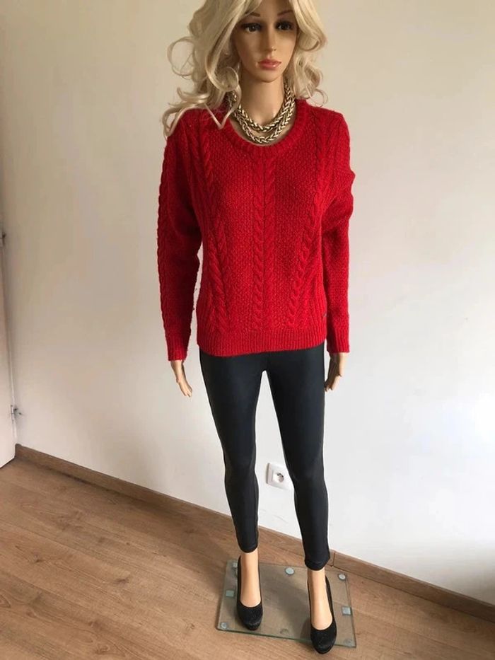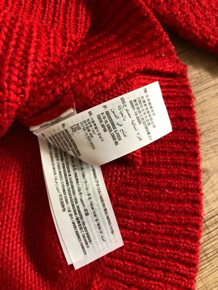 Joli pull rouge pour femme, de marque Hollister. Taille M. Porté souvent, état satisfaisant, présence de bouloches. aisselle à aisselle 50 cms et plus épaule à épaule 40 cms et plus longueur manches 64 cms taille 48 cms et plus longueur depuis épaule 56 cms Le tissu est extensible 55% acrylique, 25% laine et 20% nylon