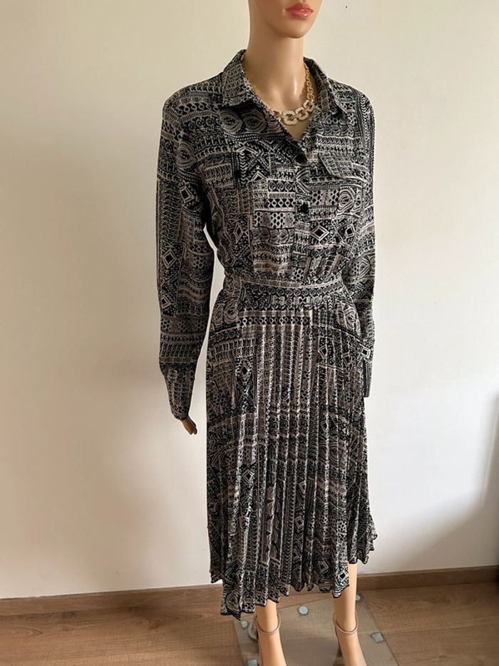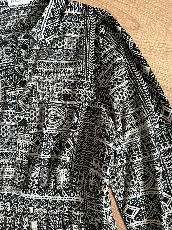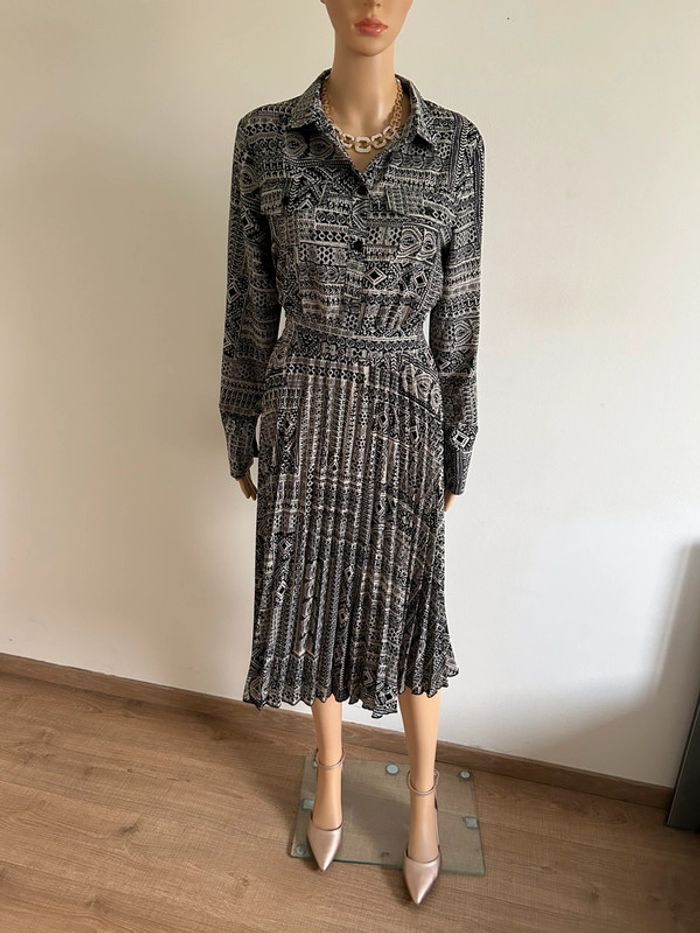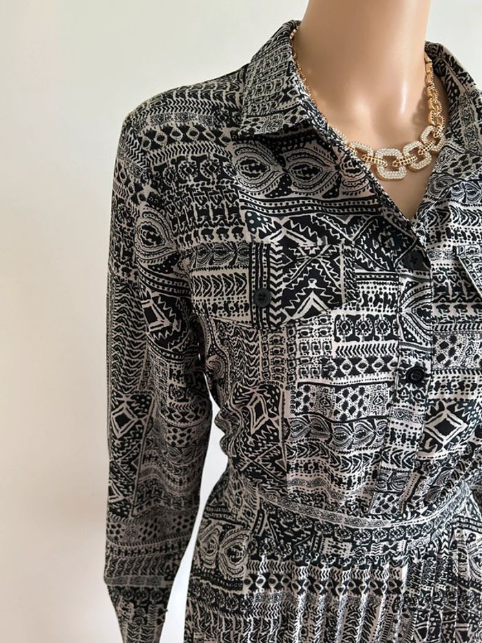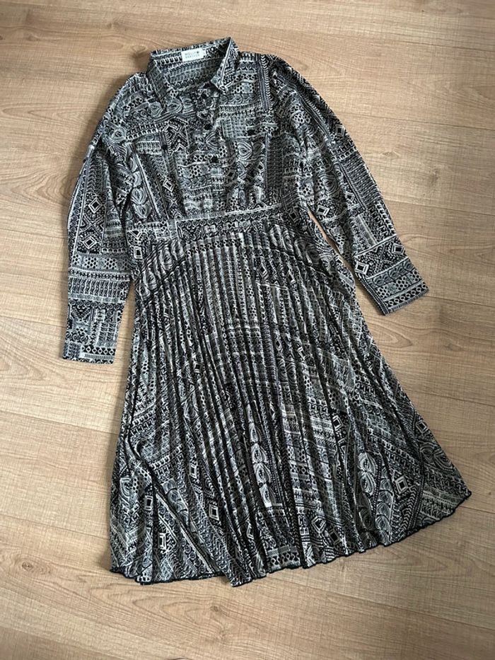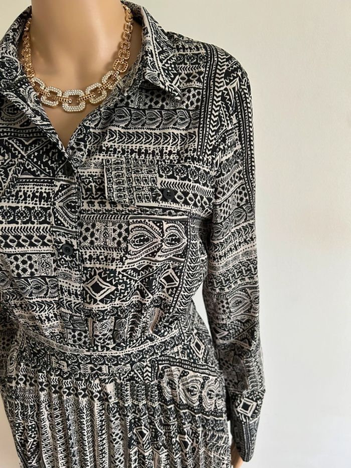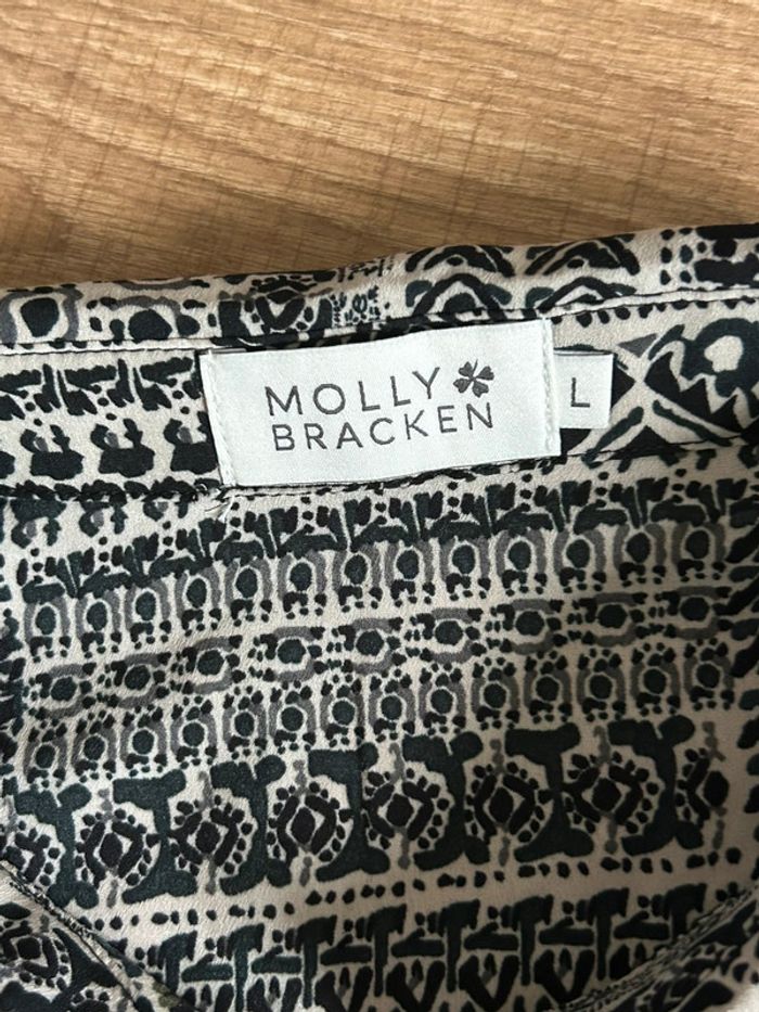 Magnifique robe imprimée noire et beige mi longue, de marque Molly Bracken. Fermeture sur le côté. Taille L. Jamais portée, état neuf. aisselle à aisselle 50 cms épaule à épaule 40 cms longueur manches 63 cms taille 41 cms longueur depuis épaule 115 cms 100% polyester Le prix reste négociable dans la limite du raisonnable. Un petit cadeau dans le colis 🌸 (Boîte 18)