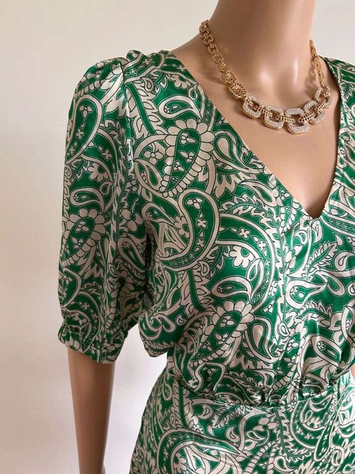 Robe satinée verte et blanche neuve Morgan taille 36 (valeur 80€) - photo numéro 2