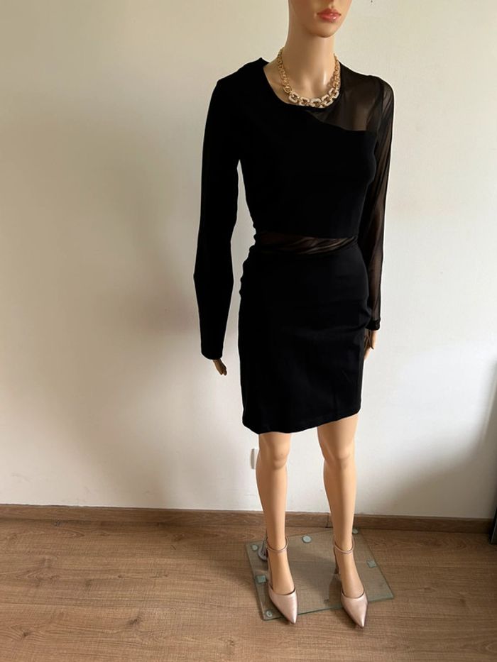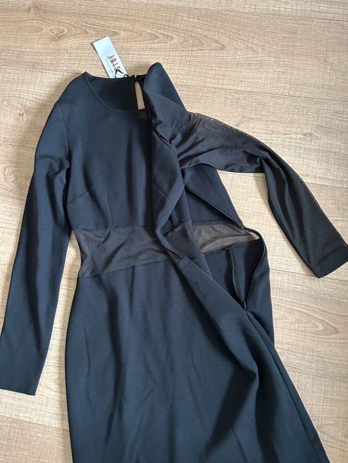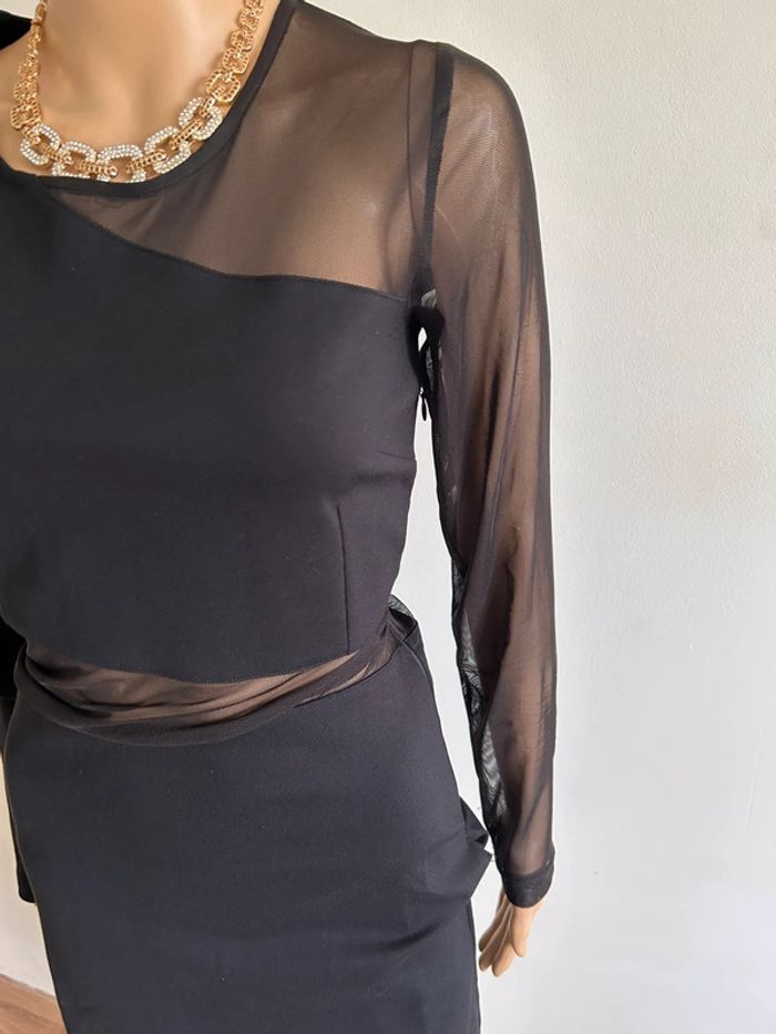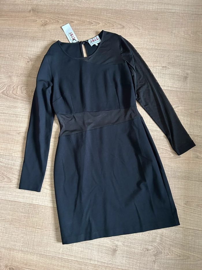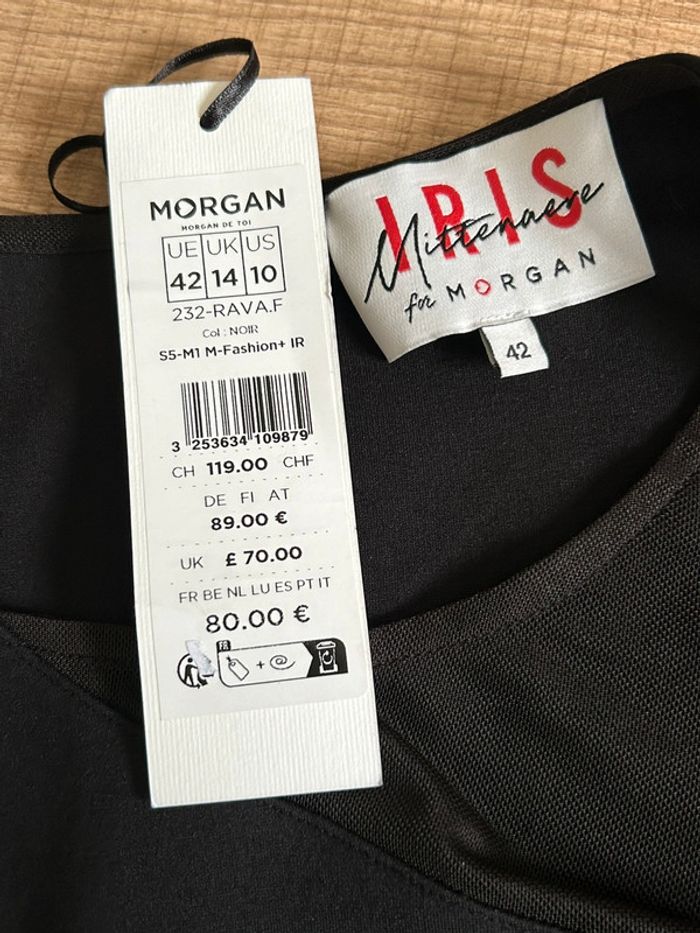 Magnifique robe noire à manches longues, avec empiècements transparents, de marque Morgan. Fermeture sur le côté. Taille 42. Elle est neuve avec étiquette (valeur 80€). aisselle à aisselle 46 cms et plus épaule à épaule 38 cms et plus longueur manches 63 cms taille 38 cms à 44 cms longueur depuis épaule 92 cms Le tissu est extensible 67% viscose, 28% polyamide et 5% elasthanne Le prix reste négociable dans la limite du raisonnable. Un petit cadeau dans le colis 🌸 (Boîte 23)