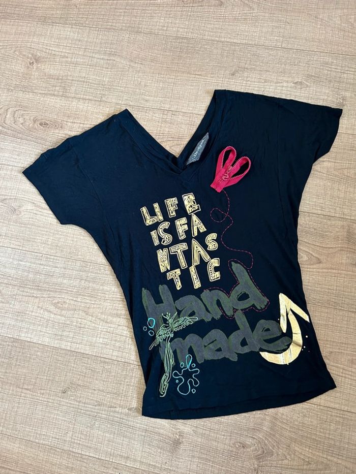 Haut noir et imprimé à manches courtes Desigual taille XS jamais porté - photo numéro 1