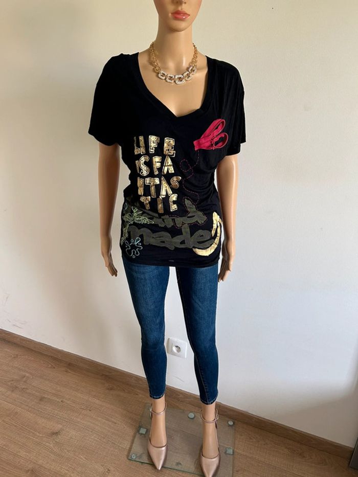 Haut noir et imprimé à manches courtes Desigual taille XS jamais porté - photo numéro 14
