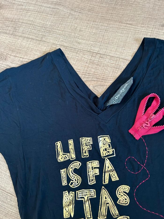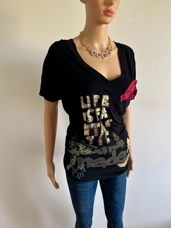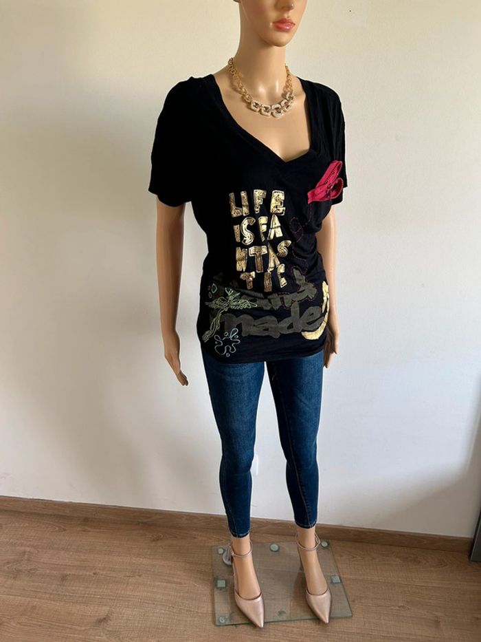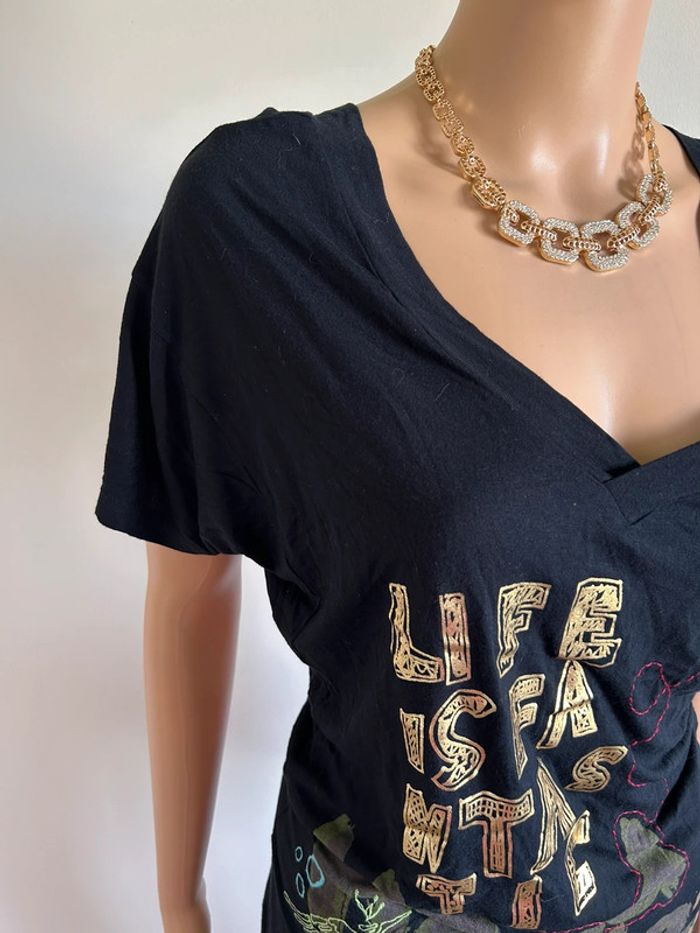 Haut noir et imprimé à manches courtes Desigual taille XS jamais porté - photo numéro 11