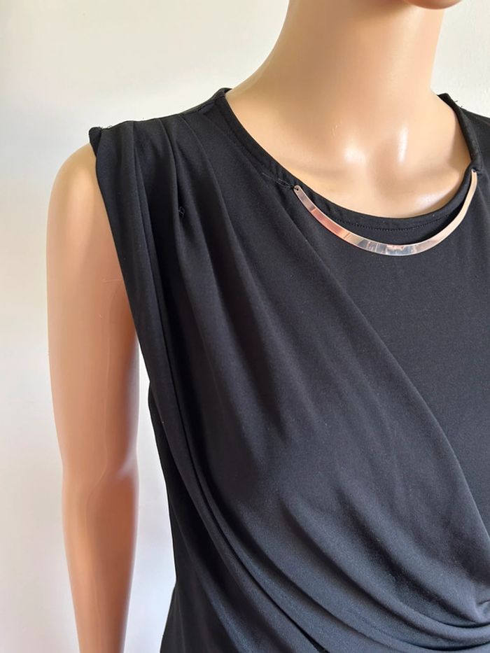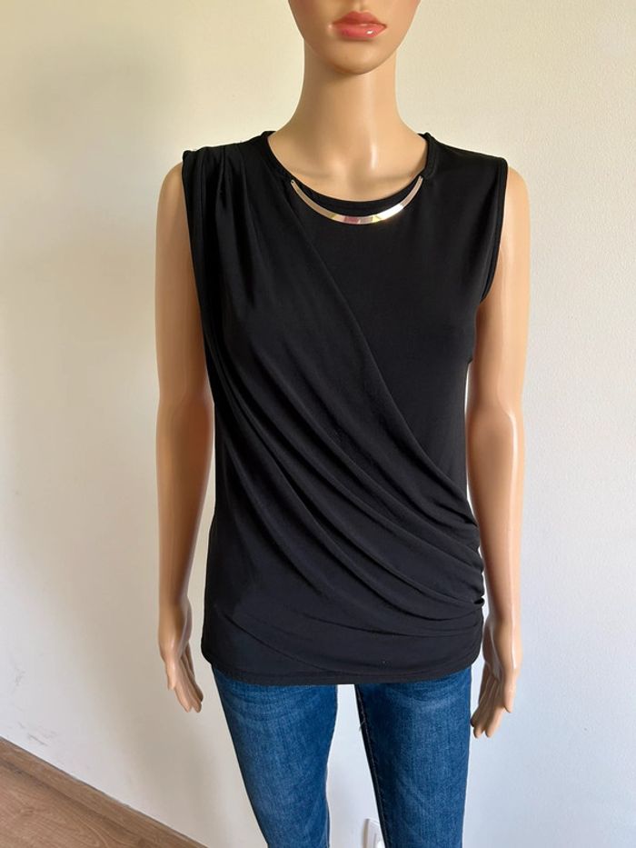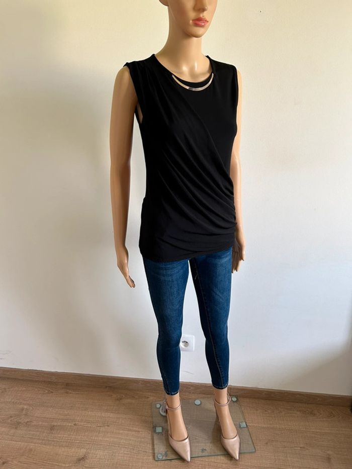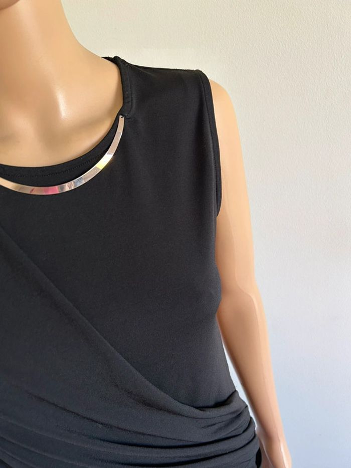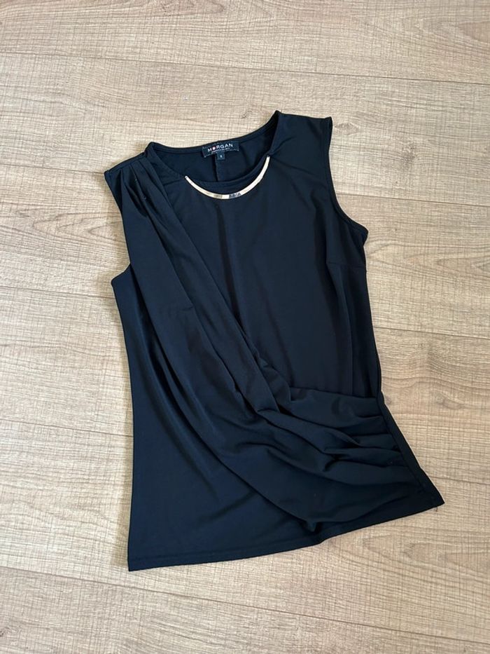 Joli haut noir sans manches, avec détail doré au niveau de l’encolure, de marque Morgan. Taille S. Jamais porté, état neuf. aisselle à aisselle 41 cms et plus taille 32 cms à 42 cms longueur depuis épaule 60 cms Le tissu est extensible Étiquette intérieure de composition coupée. Le prix reste négociable dans la limite du raisonnable. Un petit cadeau dans le colis 🌸 (Boîte 8)