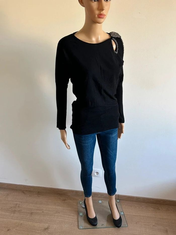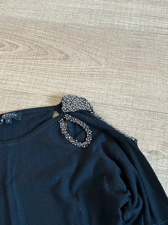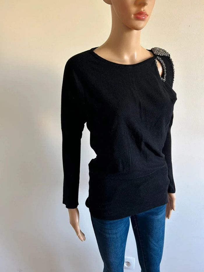 Pull noir à manches longues avec perles argentées Morgan taille S TBE - photo numéro 3