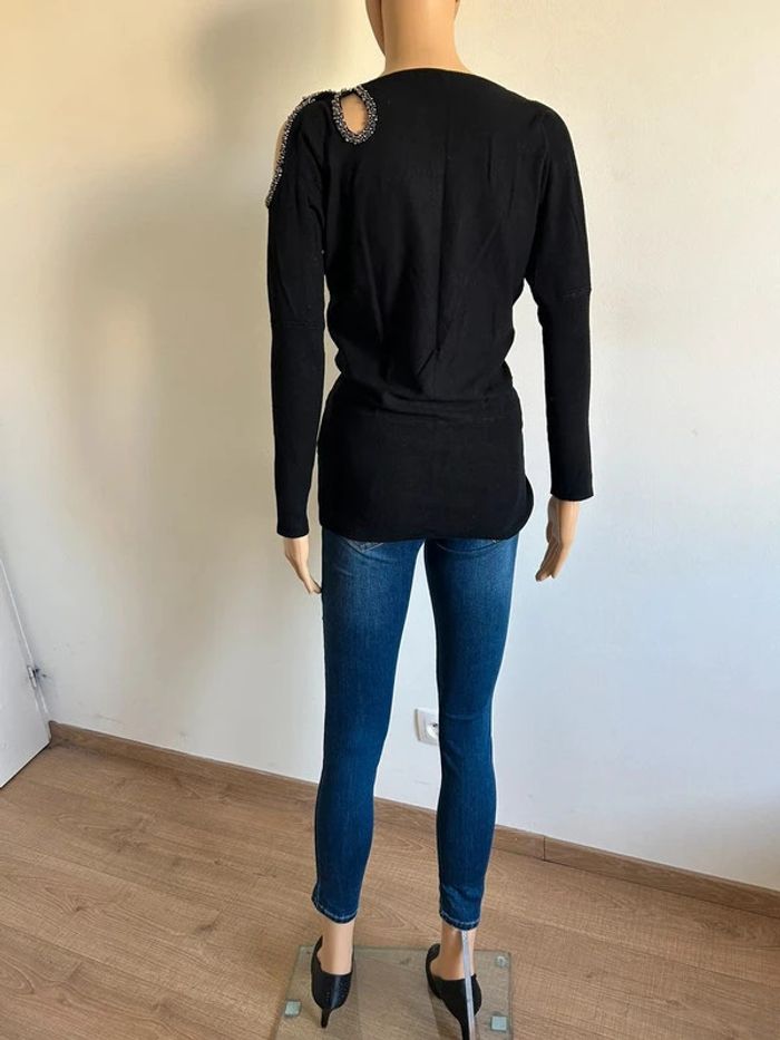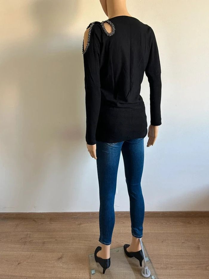 Pull noir à manches longues avec perles argentées Morgan taille S TBE - photo numéro 7