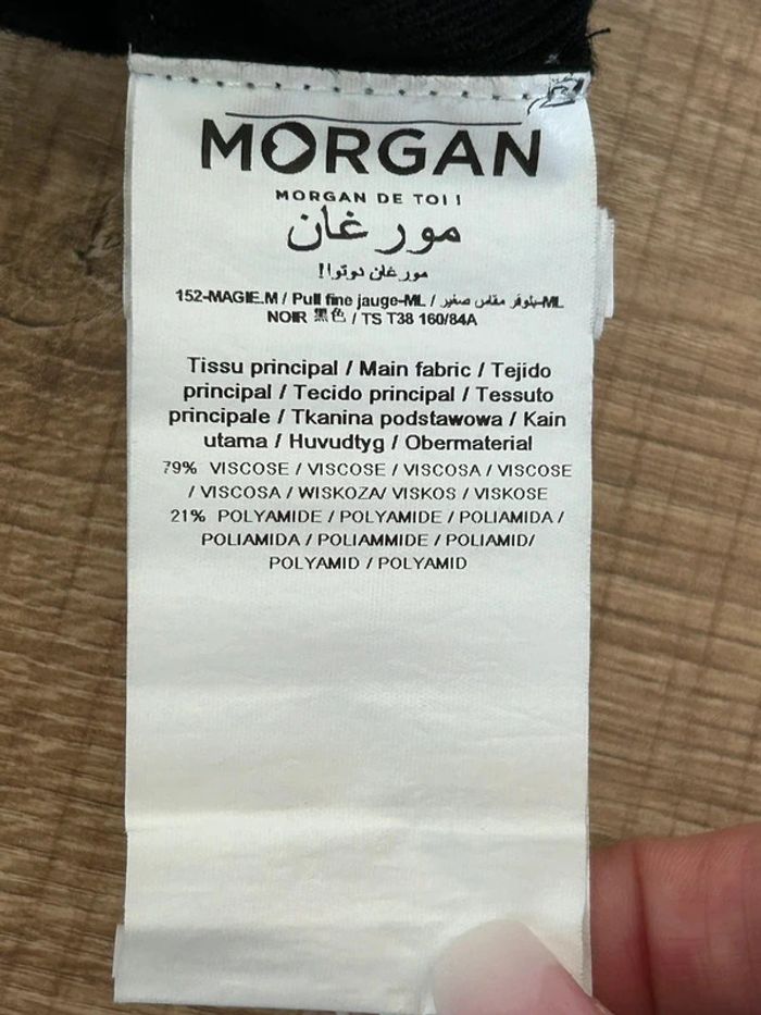 Joli pull noir à manches longues, avec perles argentés au niveau de l’épaule, de marque Morgan. Taille S. Porté une ou deux fois, en très bon état. aisselle à aisselle 49 cms et plus épaule à épaule 37 cms et plus longueur manches 50 cms taille 36 cms et plus longueur depuis épaule 67 cms Le tissu est extensible 79% viscose et 21% polyamide Le prix reste négociable dans la limite du raisonnable. Un petit cadeau dans le colis 🌸 (Boîte 3)