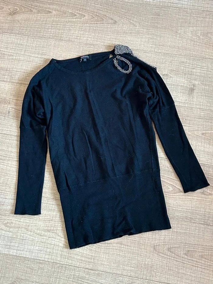 Pull noir à manches longues avec perles argentées Morgan taille S TBE - photo numéro 11