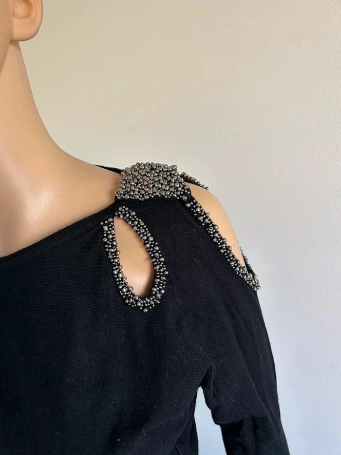 Pull noir à manches longues avec perles argentées Morgan taille S TBE - photo numéro 6