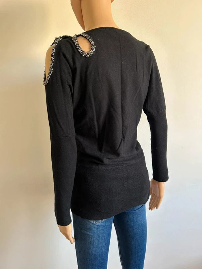 Pull noir à manches longues avec perles argentées Morgan taille S TBE - photo numéro 8