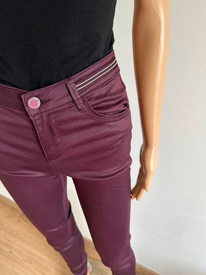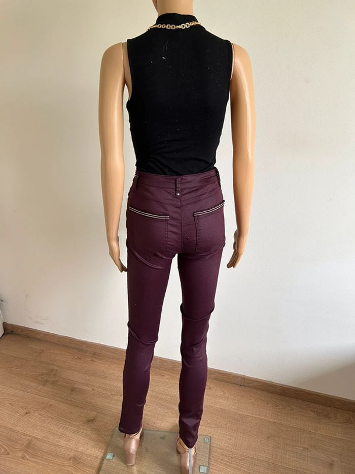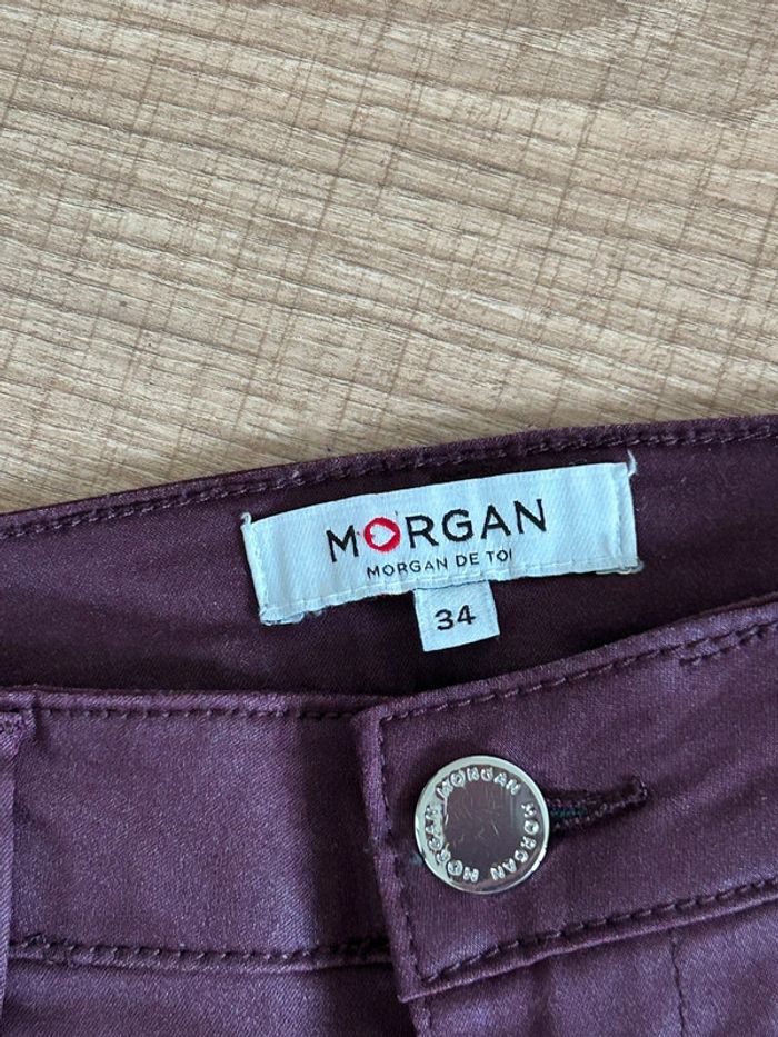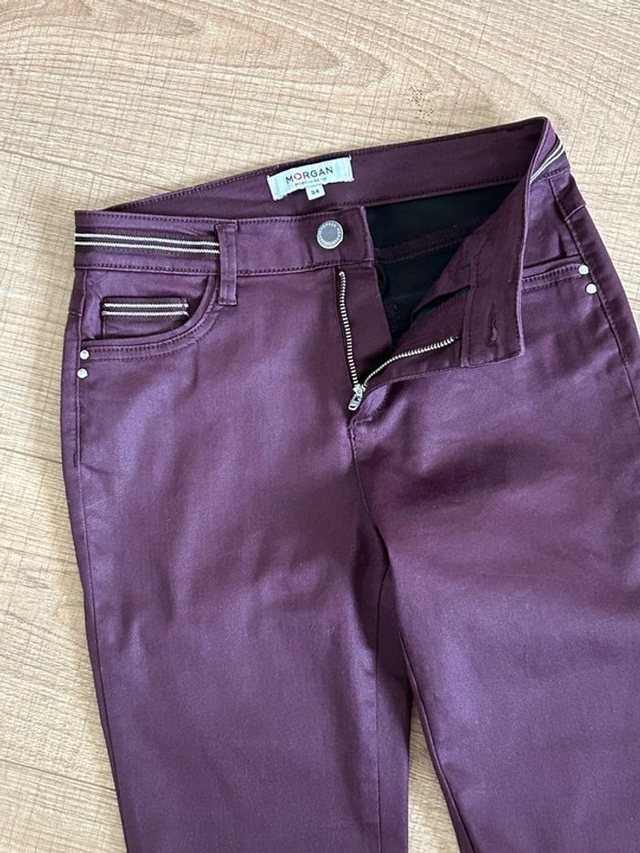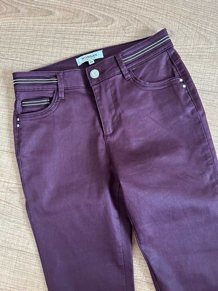 Magnifique pantalon huilé bordeaux de marque Morgan. Taille 34. Jamais porté, état neuf. taille 32 cms à 37 cms longueur 101 cms longueur entrejambes 78 cms Le tissu est extensible Étiquette intérieure de composition coupée Le prix reste négociable dans la limite du raisonnable. Un petit cadeau dans le colis 🌸