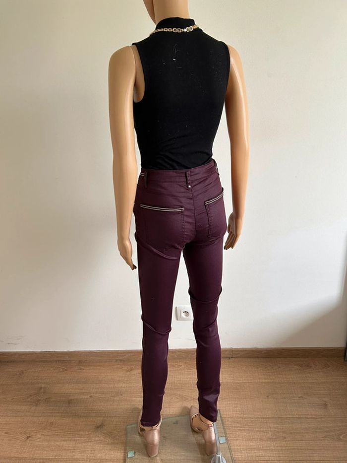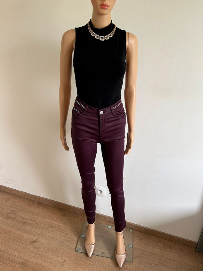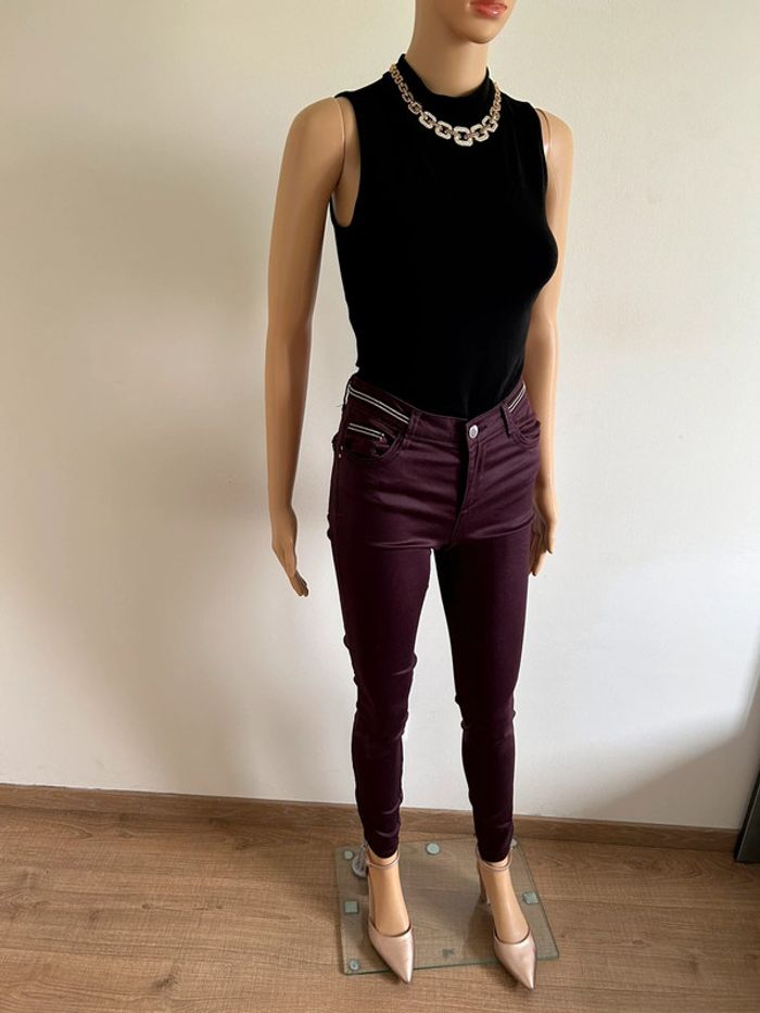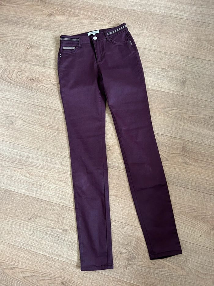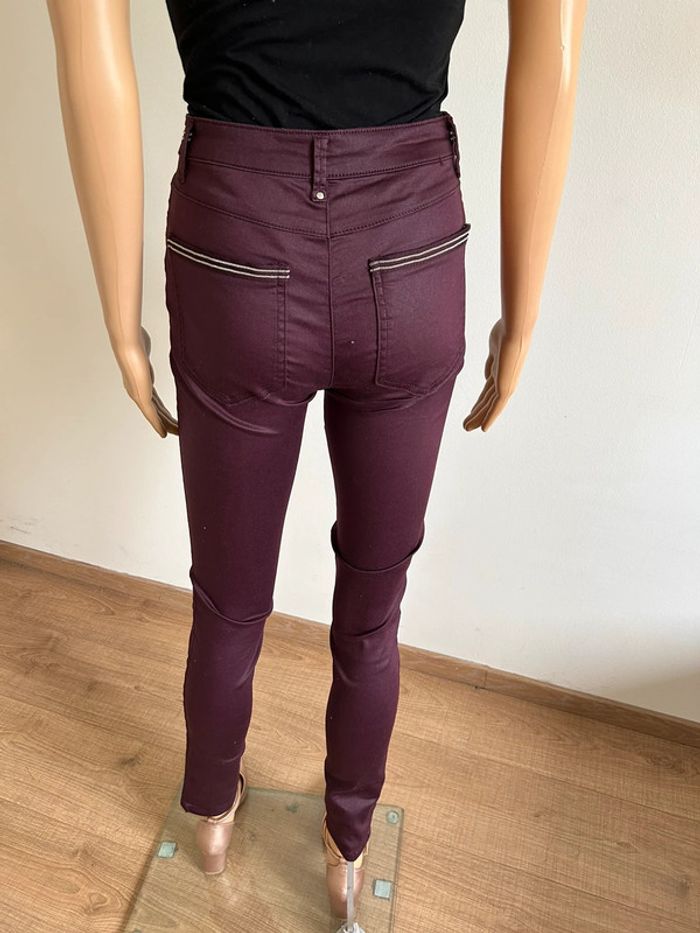 Magnifique pantalon huilé bordeaux de marque Morgan. Taille 34. Jamais porté, état neuf. taille 32 cms à 37 cms longueur 101 cms longueur entrejambes 78 cms Le tissu est extensible Étiquette intérieure de composition coupée Le prix reste négociable dans la limite du raisonnable. Un petit cadeau dans le colis 🌸