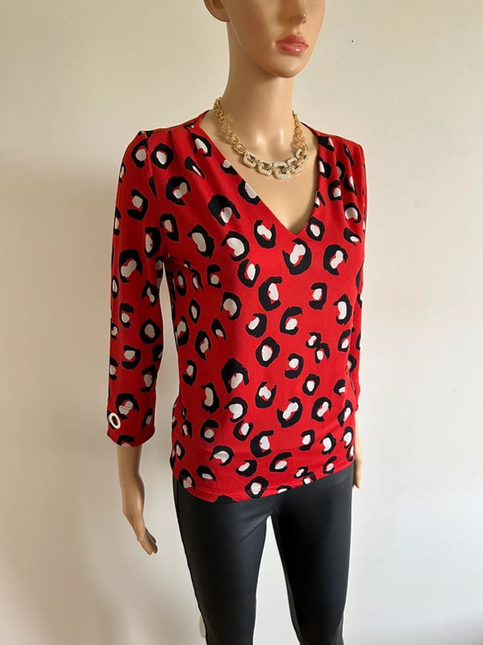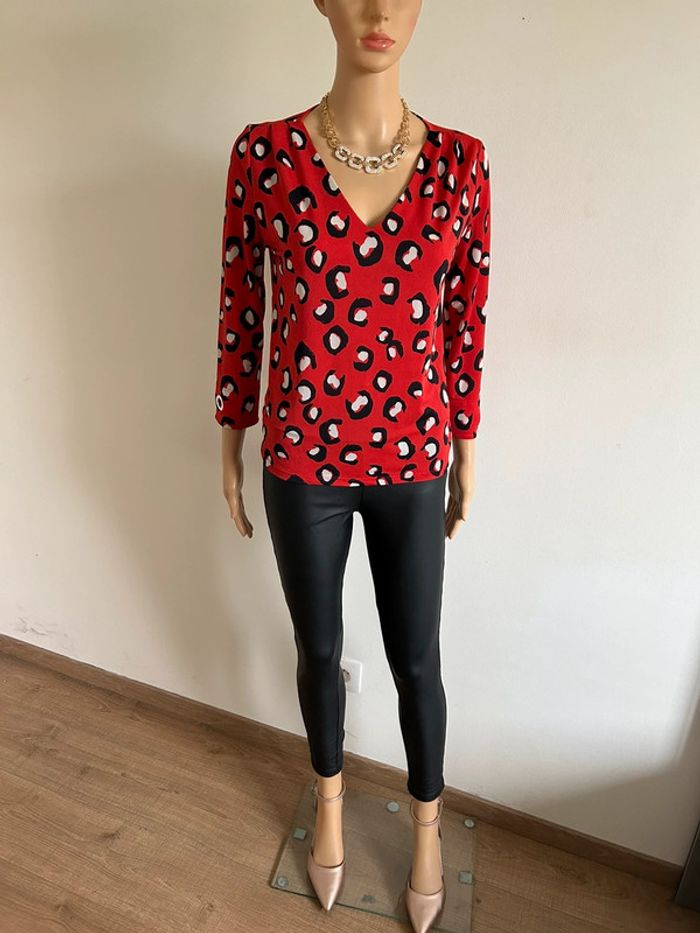 Blouse rouge léopard avec manches 3/4 Morgan taille XS jamais portée - photo numéro 2