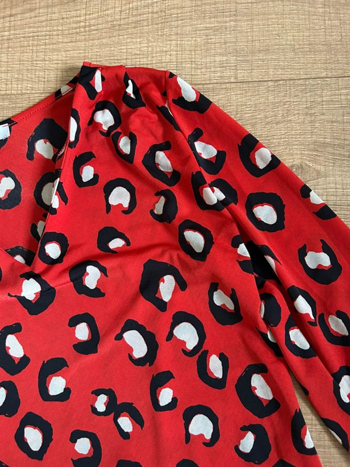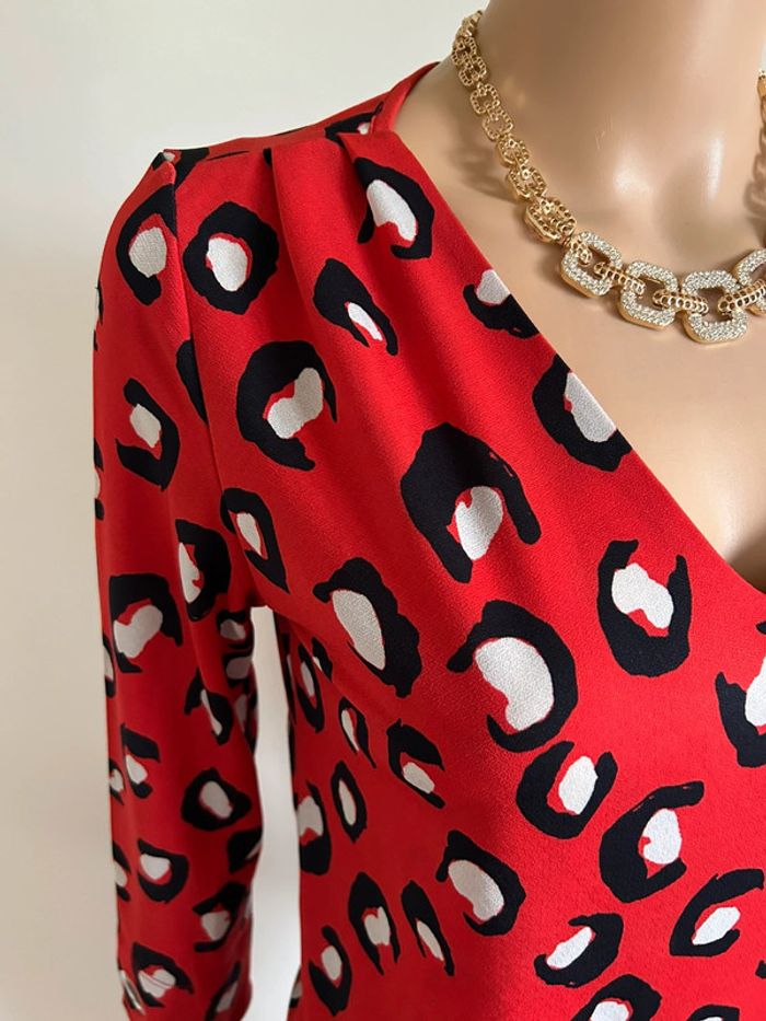 Blouse rouge léopard avec manches 3/4 Morgan taille XS jamais portée - photo numéro 12