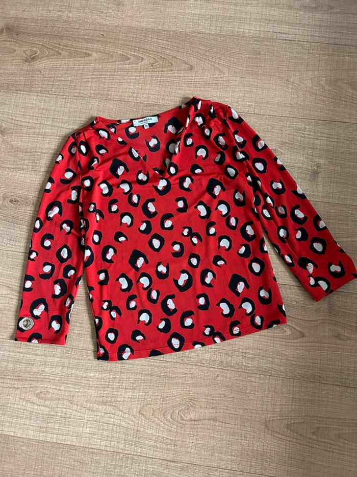 Blouse rouge léopard avec manches 3/4 Morgan taille XS jamais portée - photo numéro 1