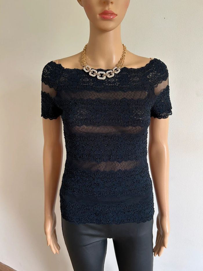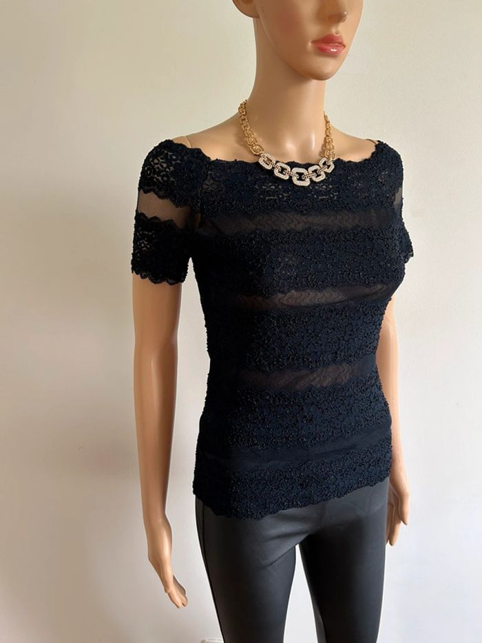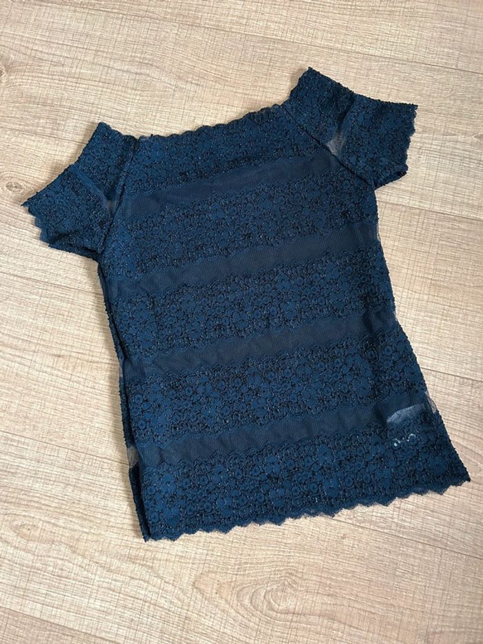 Haut bleu marine avec dentelle taille unique jamais porté (taille petit) - photo numéro 3