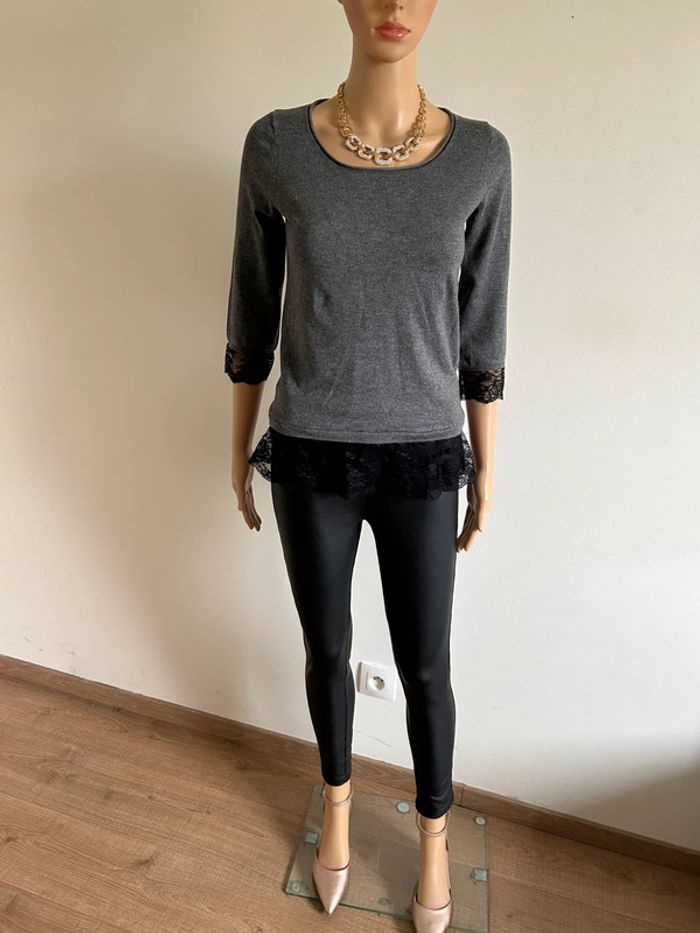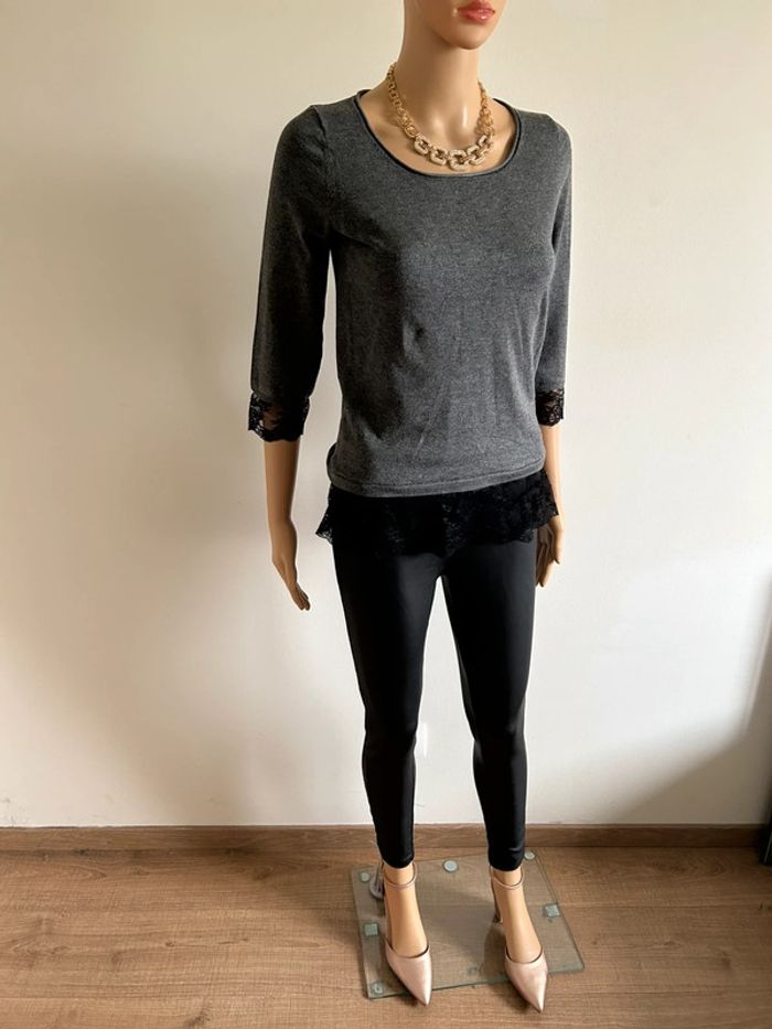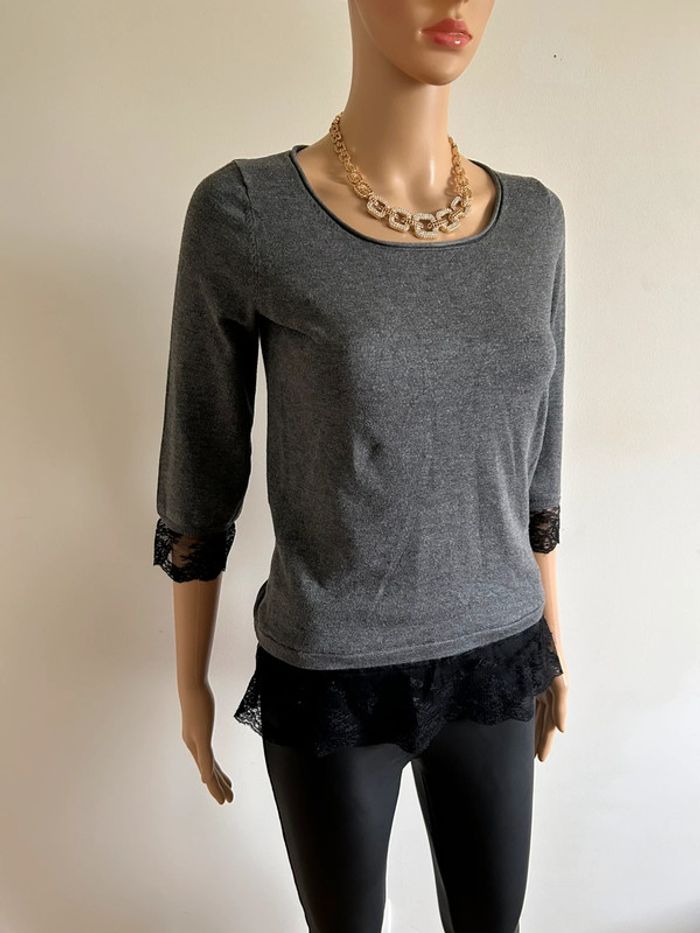Pull gris et noir avec dentelle Morgan taille S excellent état - photo numéro 1