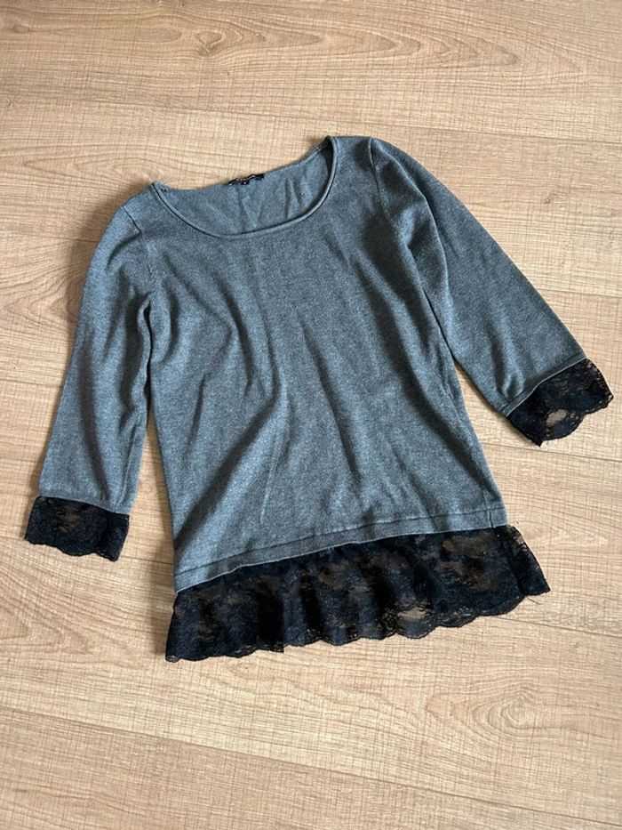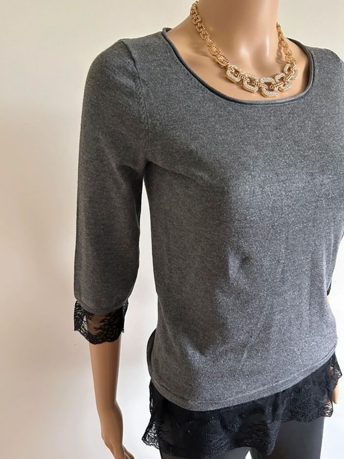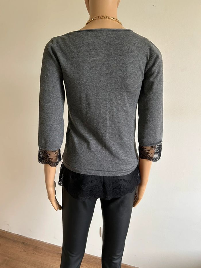 Pull gris et noir avec dentelle Morgan taille S excellent état - photo numéro 3