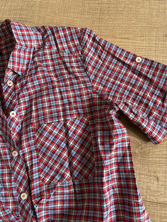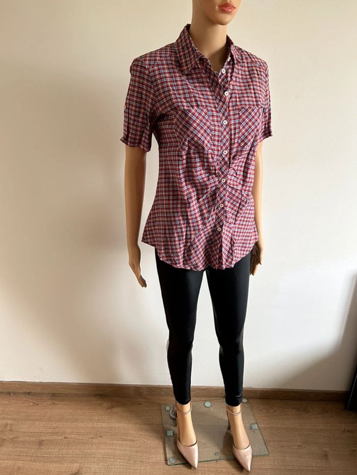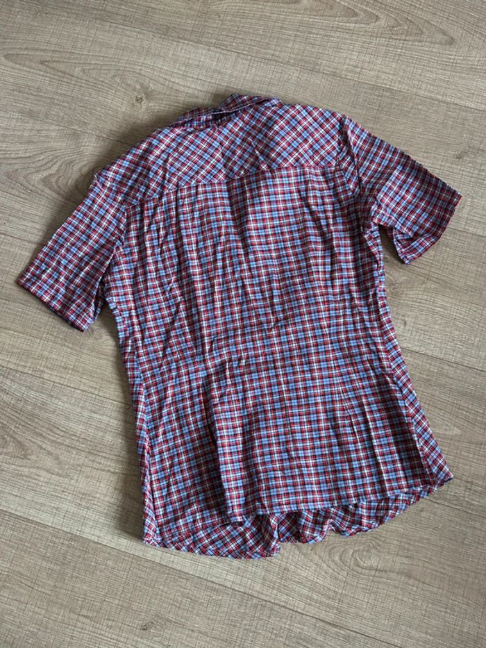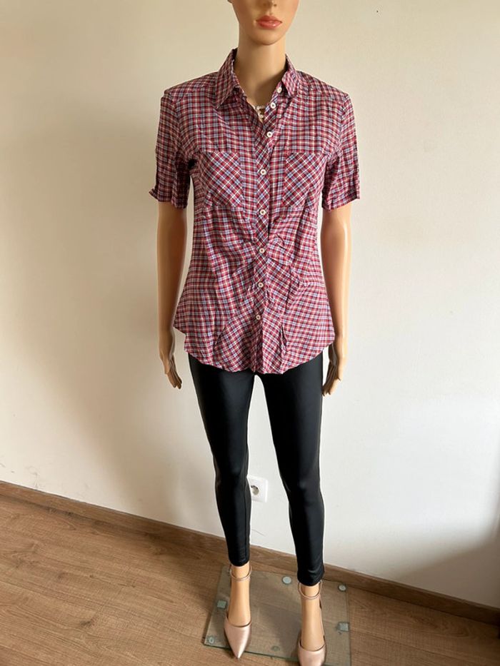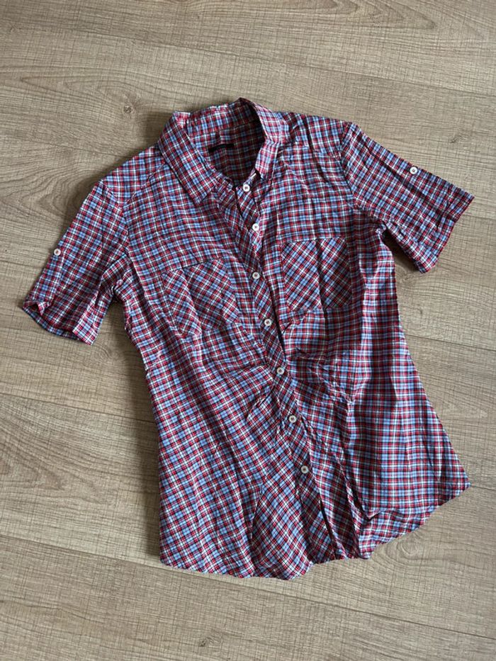 Jolie chemisette à carreaux et manches courtes, de marque IKKS. Correspond à une taille 36 (étiquette de taille coupée, voir mesures en dessous). Peu portée, en excellent état. aisselle à aisselle 46 cms épaule à épaule 39 cms taille 40 cms longueur depuis épaule 60 cms Étiquette intérieure de composition coupée Le prix reste négociable dans la limite du raisonnable. Un petit cadeau dans le colis 🌸 (Boîte 6)