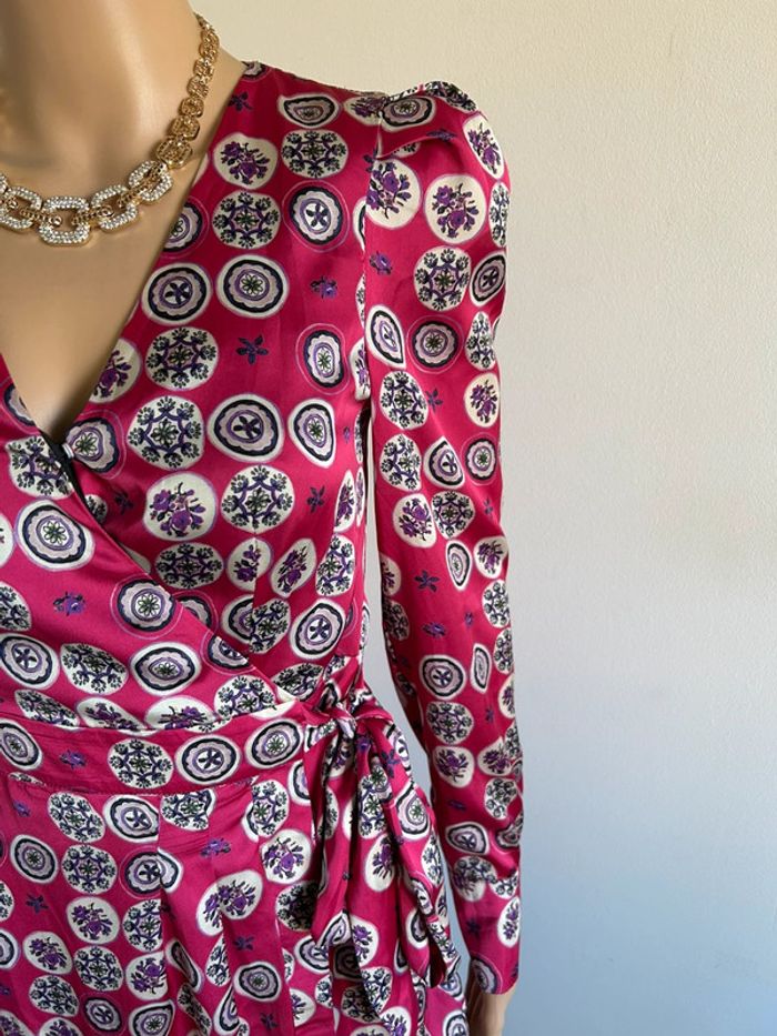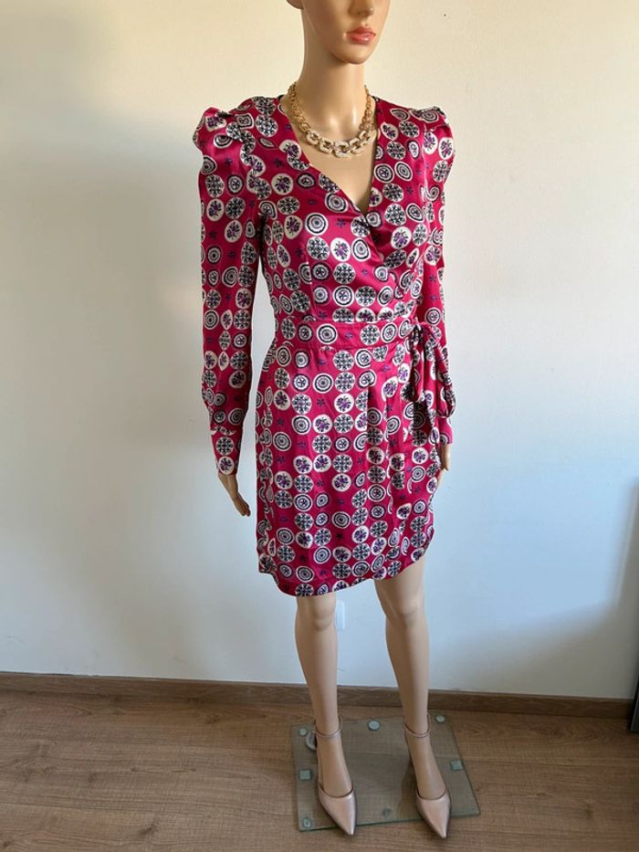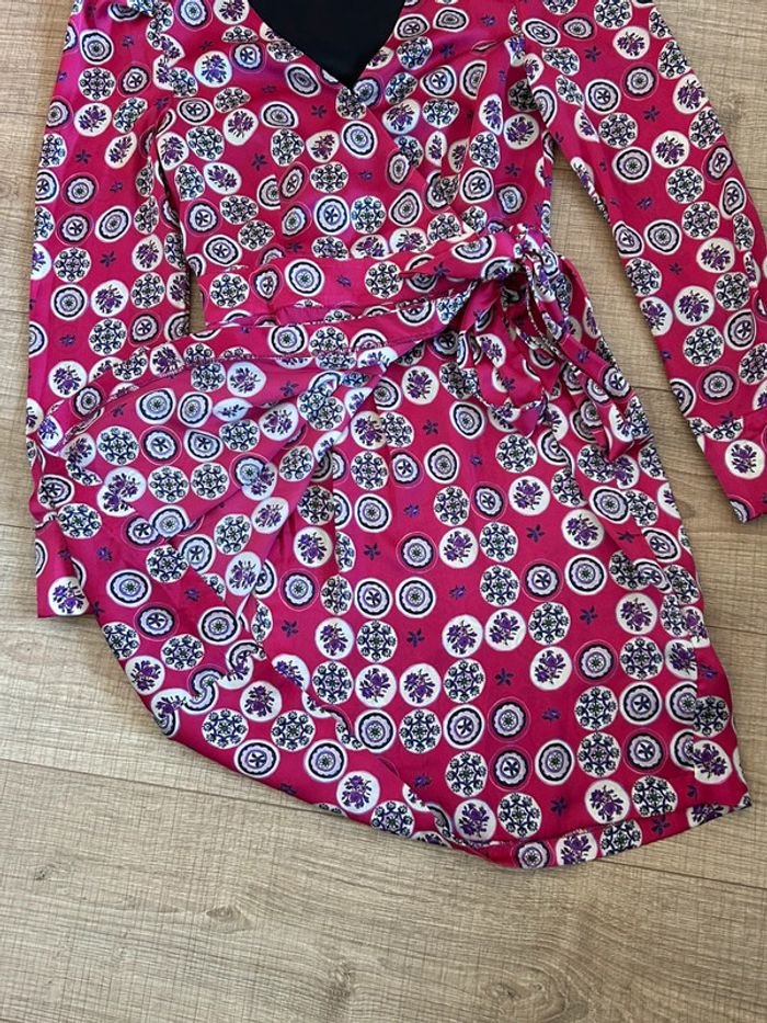 Magnifique robe portefeuille rose satinée, à manches longues, de marque Morgan. Taille 34. Jamais portée. aisselle à aisselle 40 cms épaule à épaule 36 cms longueur manches 62 cms taille 34 cms longueur depuis épaule 86 cms 100% polyester Le prix reste négociable dans la limite du raisonnable. Un petit cadeau dans le colis 🌸 (Boîte 13)