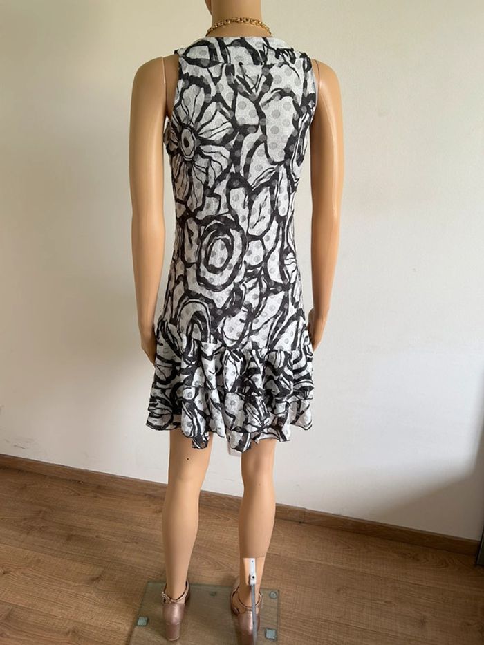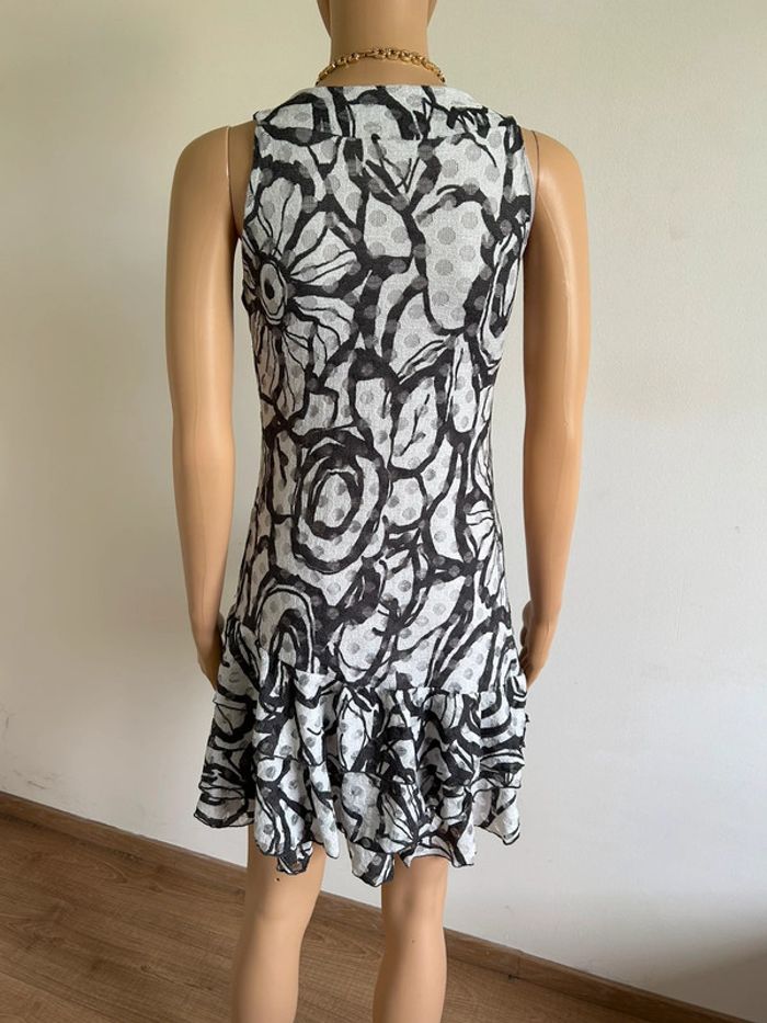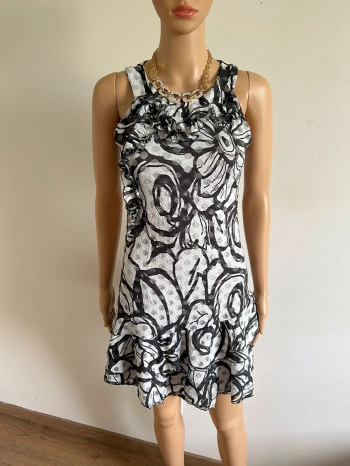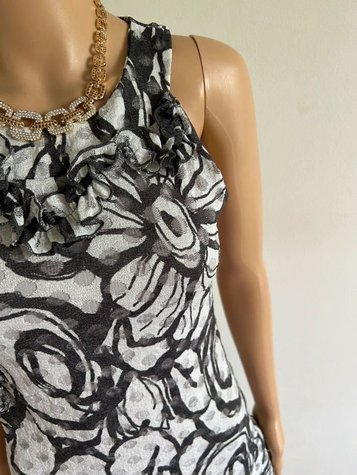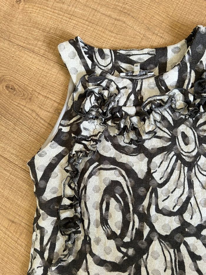 Jolie robe grise imprimée sans manches, de marque LolaLiza. Taille 38 mais elle taille petit (voir mesures en dessous). Peu portée, en très bon état. aisselle à aisselle 39 cms à 44 cms taille 35 cms à 41 cms longueur depuis épaule 83 cms Le tissu est extensible 95% polyester et 5% elasthanne Le prix reste négociable dans la limite du raisonnable. Un petit cadeau dans le colis 🌸 (Boîte 25)