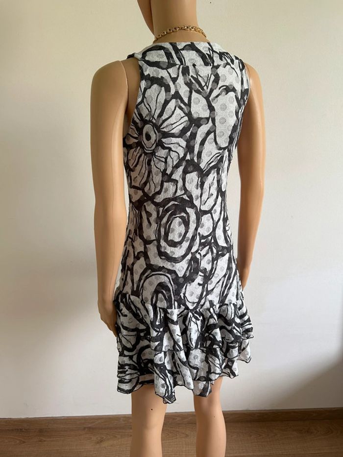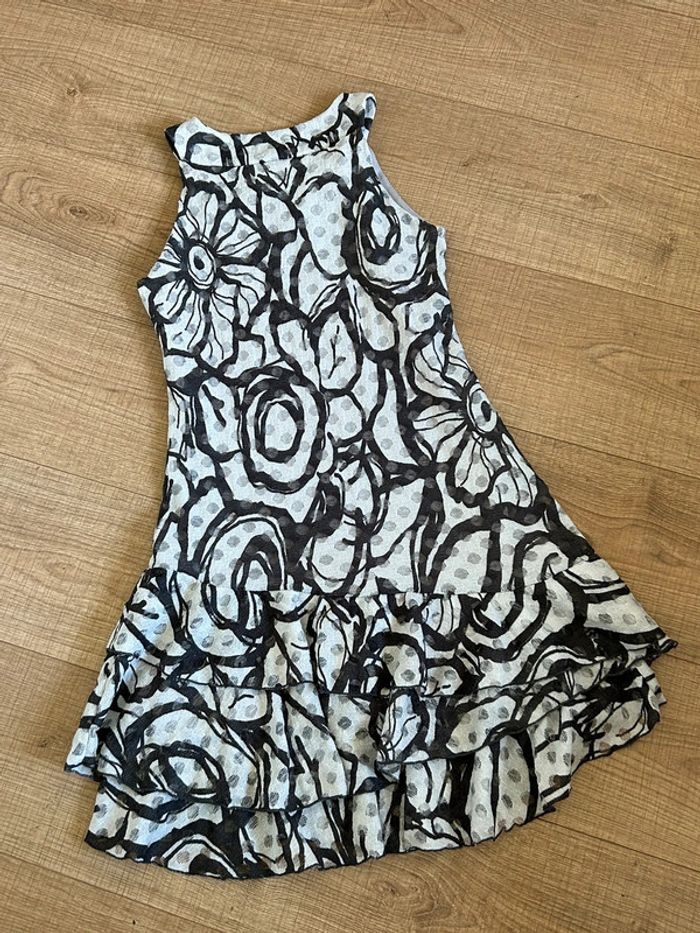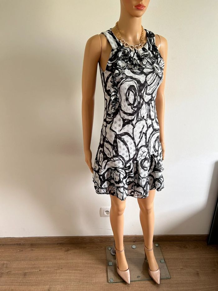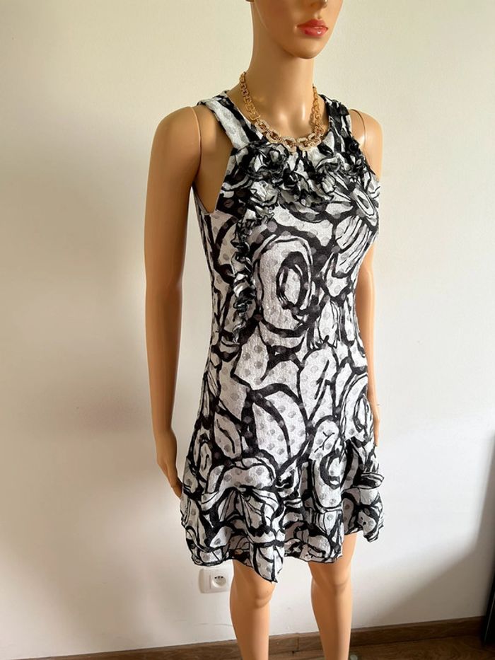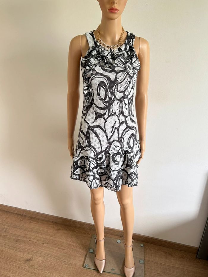 Jolie robe grise imprimée sans manches, de marque LolaLiza. Taille 38 mais elle taille petit (voir mesures en dessous). Peu portée, en très bon état. aisselle à aisselle 39 cms à 44 cms taille 35 cms à 41 cms longueur depuis épaule 83 cms Le tissu est extensible 95% polyester et 5% elasthanne Le prix reste négociable dans la limite du raisonnable. Un petit cadeau dans le colis 🌸 (Boîte 25)