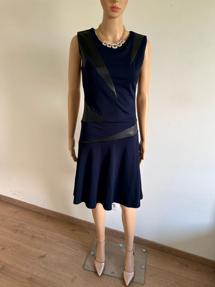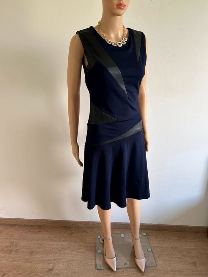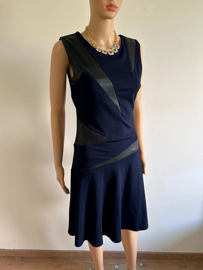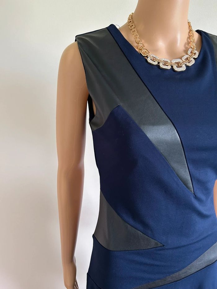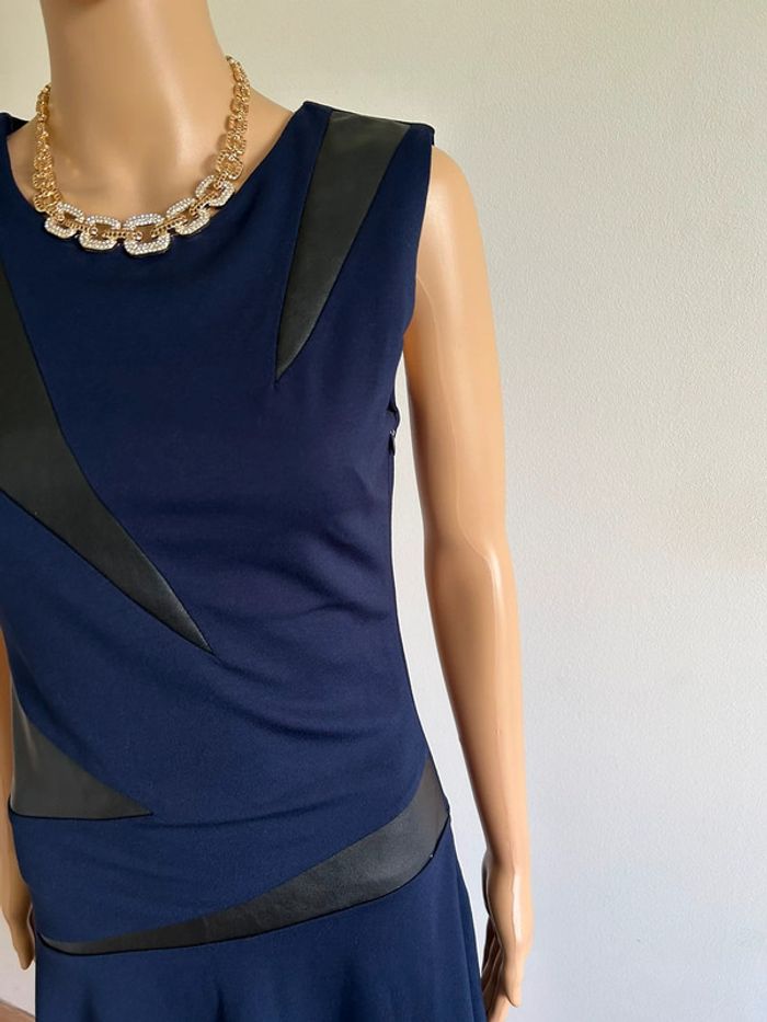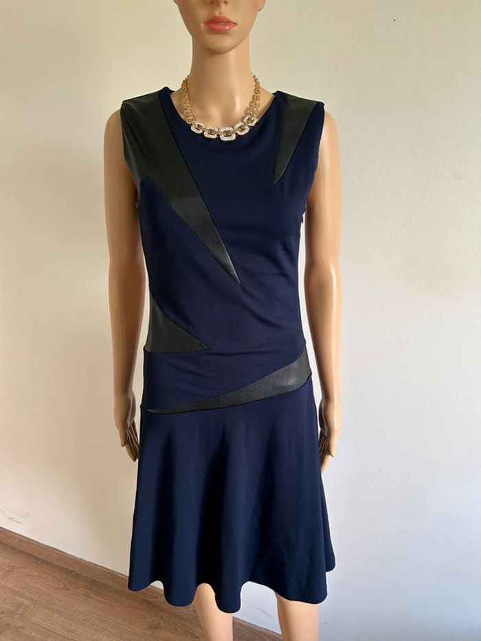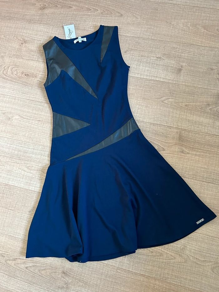 Magnifique robe bleue marine et noire sans manches, avec empiècements en simili cuir, de marque Jus d’Orange. Fermeture sur le côté. Taille 1 qui correspond à du 36. Elle est neuve avec étiquette. aisselle à aisselle 40 cms à 44 cms taille 35 cms à 39 cms longueur depuis épaule 98 cms Le tissu est extensible 60% viscose, 35% polyamide et 5% elasthanne Le prix reste négociable dans la limite du raisonnable. Un petit cadeau dans le colis 🌸