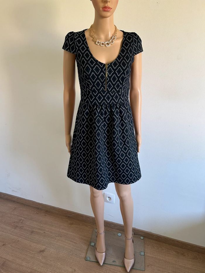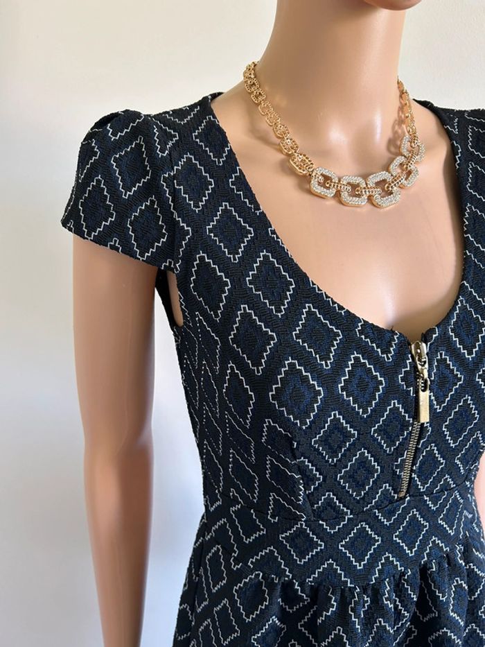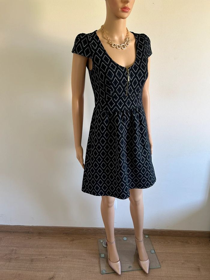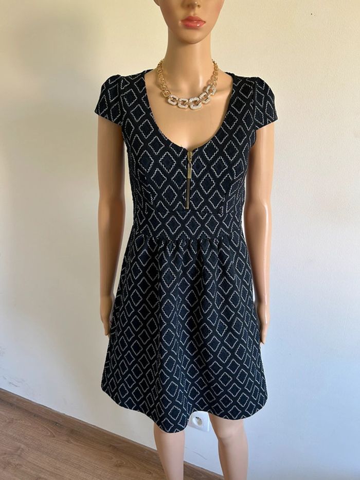 Jolie robe bleue marine à manches courtes, de marque Naf Naf. Petite fermeture sur le devant. Taille XS. Peu portée, en très bon état. aisselle à aisselle 41 cms épaule à épaule 34 cms taille 34 cms longueur depuis épaule 83 cms 98% polyester et 2% elasthanne Le prix reste négociable dans la limite du raisonnable. Un petit cadeau dans le colis 🌸 (Boîte 14)