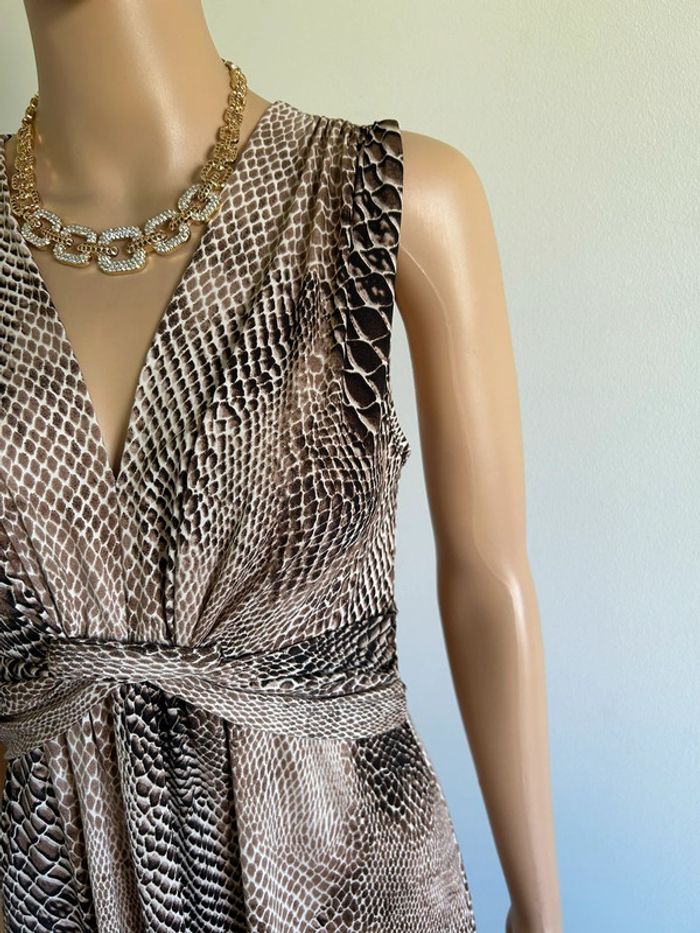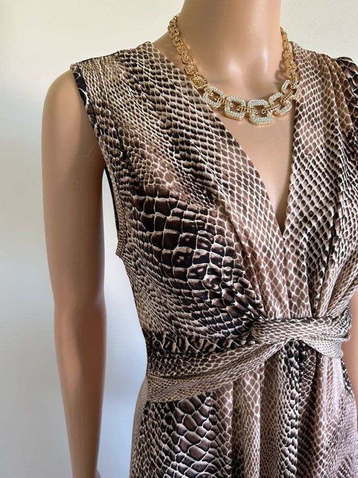 Jolie robe imprimée beige et marron sans manches, de marque Morgan. Taille 38. Jamais portée, état neuf. aisselle à aisselle 40 cms à 48 cms taille 33 cms à 42 cms longueur depuis épaule 90 cms Le tissu est extensible Étiquette intérieure de composition coupée. Le prix reste négociable dans la limite du raisonnable. Un petit cadeau dans le colis 🌸 (Boîte 25)