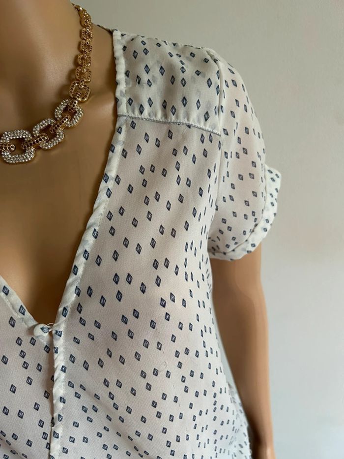Jolie blouse blanche et bleue à manches courtes, de marque Kaporal. Taille XS. Jamais portée, état neuf. aisselle à aisselle 49 cms épaule à épaule 36 cms taille 48 cms longueur depuis épaule 59 cms Étiquette intérieure de composition coupée Le prix reste négociable dans la limite du raisonnable. Un petit cadeau dans le colis 🌸 (Boîte 7)