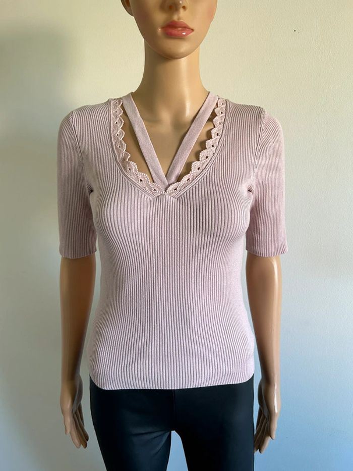 Pull rose clair à manches courtes Morgan taille S TBE - photo numéro 1
