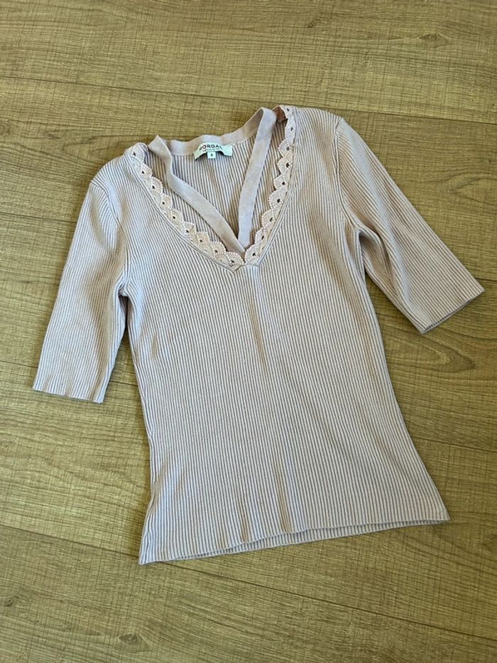 Joli pull rose clair à manches courtes, de marque Morgan. Taille S. Porté plusieurs fois, en très bon état. aisselle à aisselle 30 cms à 43 cms épaule à épaule 33 cms à 39 cms taille 30 cms à 37 cms longueur depuis épaule 50 cms Le tissu est extensible Étiquette intérieure de composition coupée. Le prix reste négociable dans la limite du raisonnable. Un petit cadeau dans le colis 🌸 (Boîte 4)