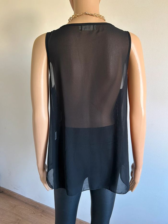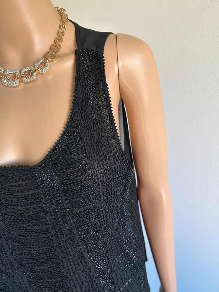 Magnifique débardeur noir sans manches, de marque Molly Bracken. Perles noires sur le devant, et transparent dans le dos. Taille 2 qui correspond à un 38. Jamais porté, état neuf. aisselle à aisselle 45 cms taille 44 cms longueur depuis épaule 62 cms 40% sequins et 60% polyester Le prix reste négociable dans la limite du raisonnable. Un petit cadeau dans le colis 🌸 (Boîte 1)