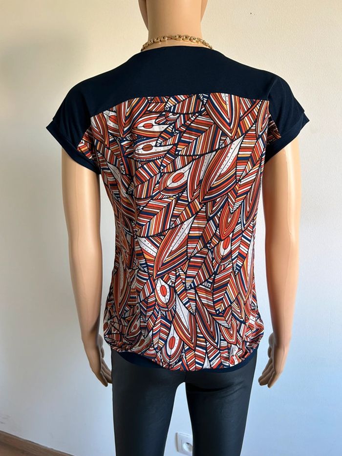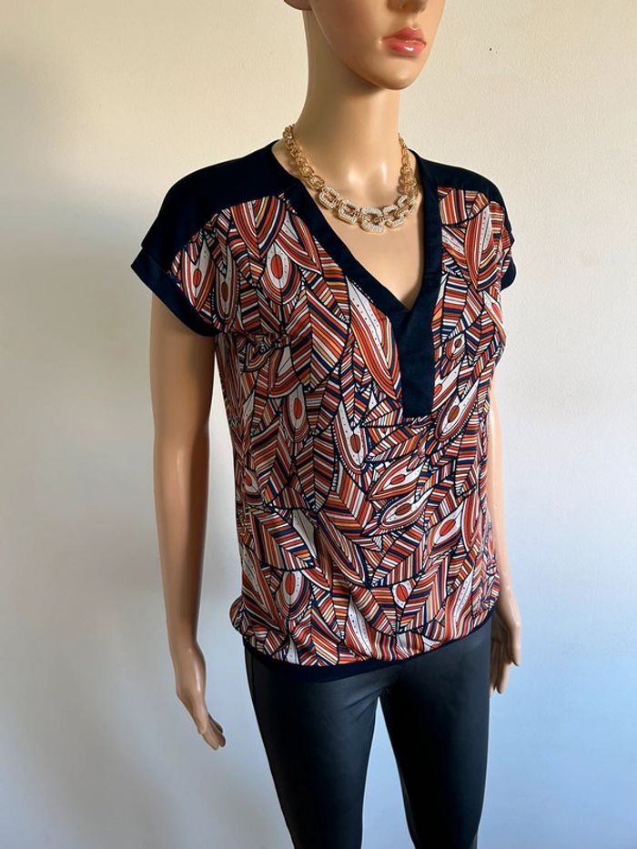 Jolie blouse imprimée noire et multicolore à manches courtes, de marque LolaLiza. Taille 36. Jamais portée, état neuf. aisselle à aisselle 43 cms et plus taille 41 cms et plus longueur depuis épaule 58 cms Le tissu est extensible 95% polyester et 5% elasthanne Le prix reste négociable dans la limite du raisonnable. Un petit cadeau dans le colis 🌸 (Boîte 8)