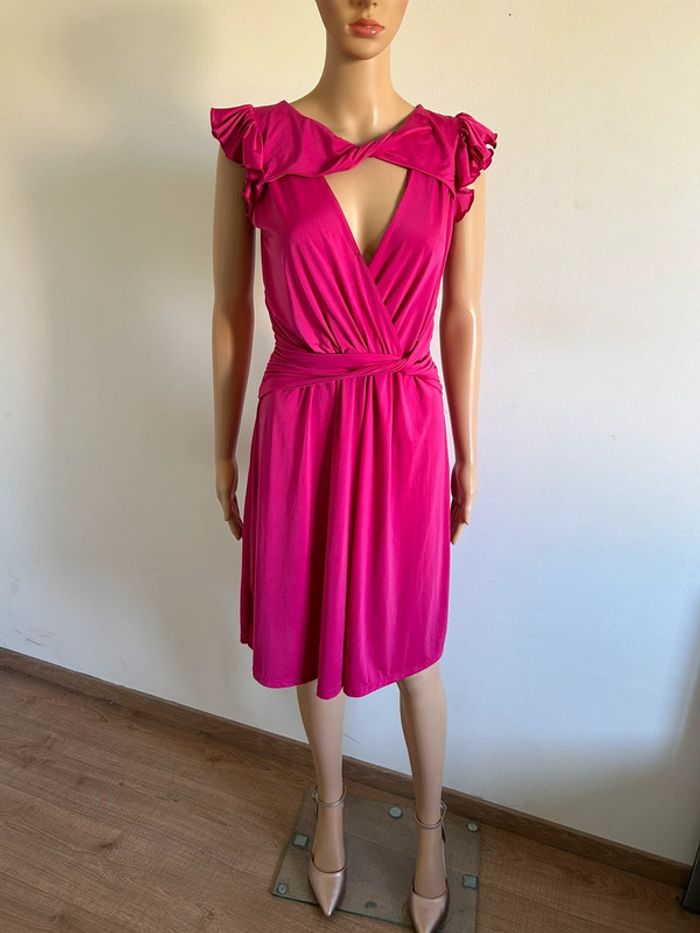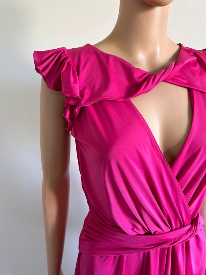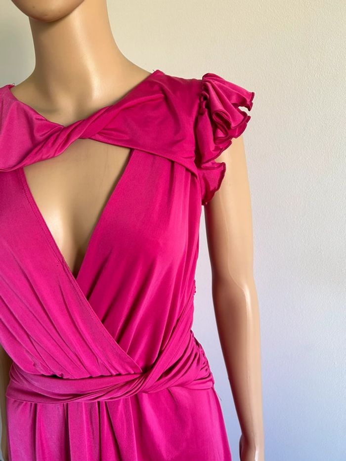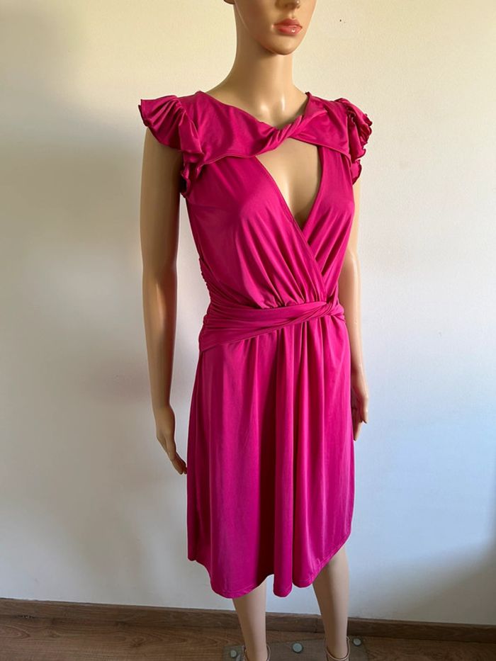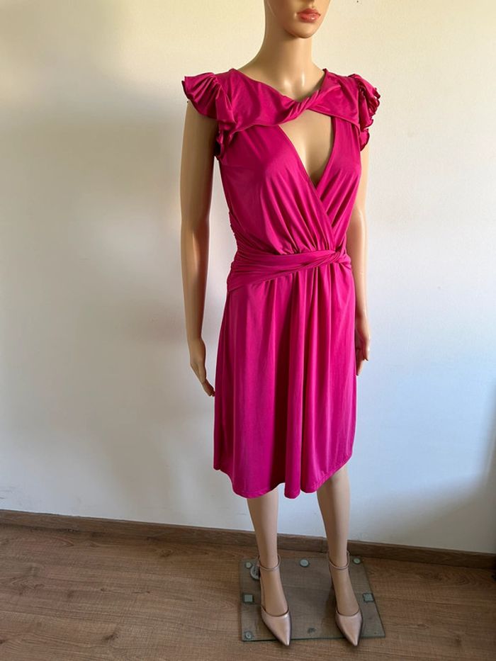 Magnifique robe rose framboise à manches courtes, de marque Morgan. Décolleté prononcé sur le devant. Taille M. Jamais portée, état neuf. aisselle à aisselle 41 cms à 47 cms épaule à épaule 34 cms et plus taille 31 cms à 40 cms longueur depuis épaule 95 cms Le tissu est extensible 95% polyester et 5% spandex Le prix reste négociable dans la limite du raisonnable. Un petit cadeau dans le colis 🌸 (Boîte 27)